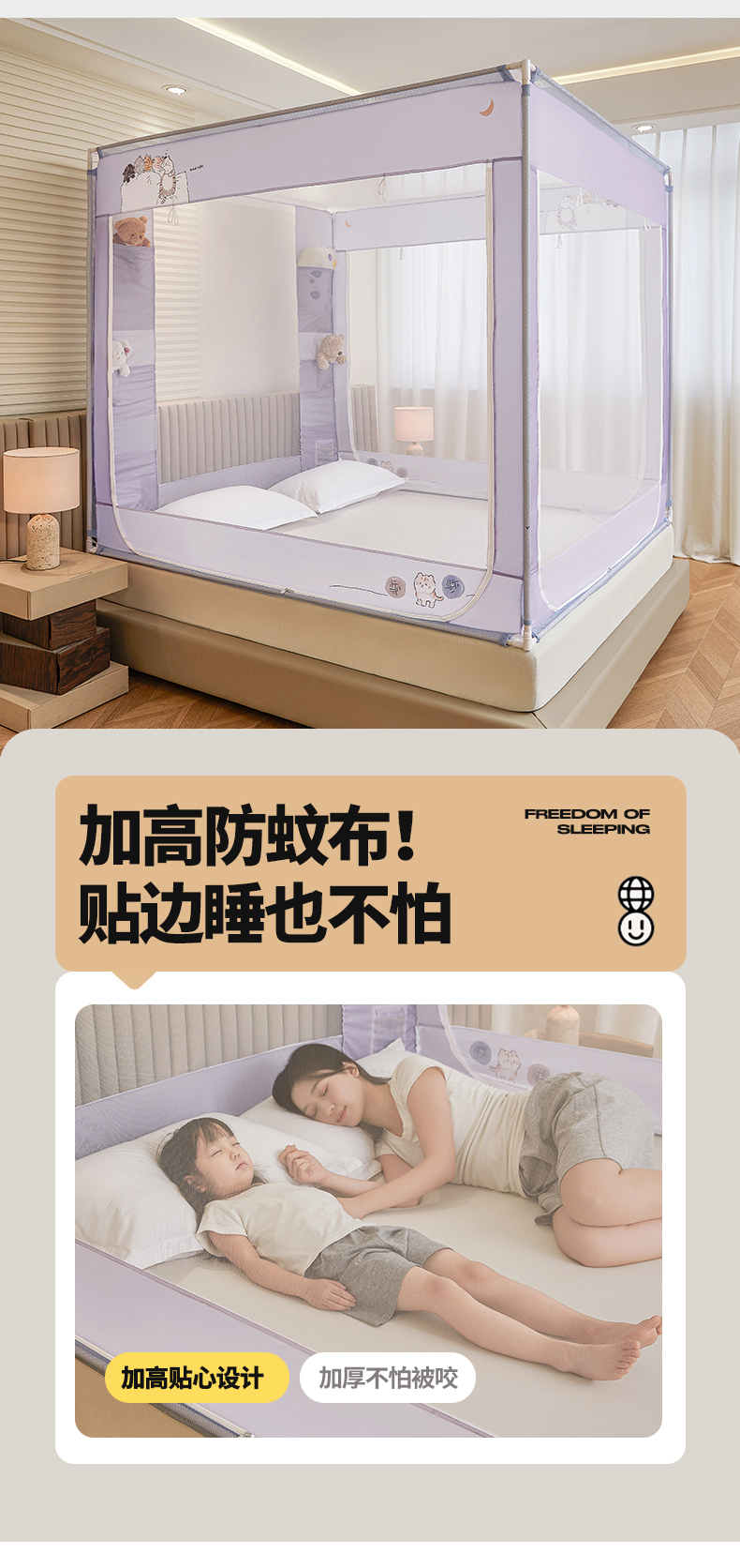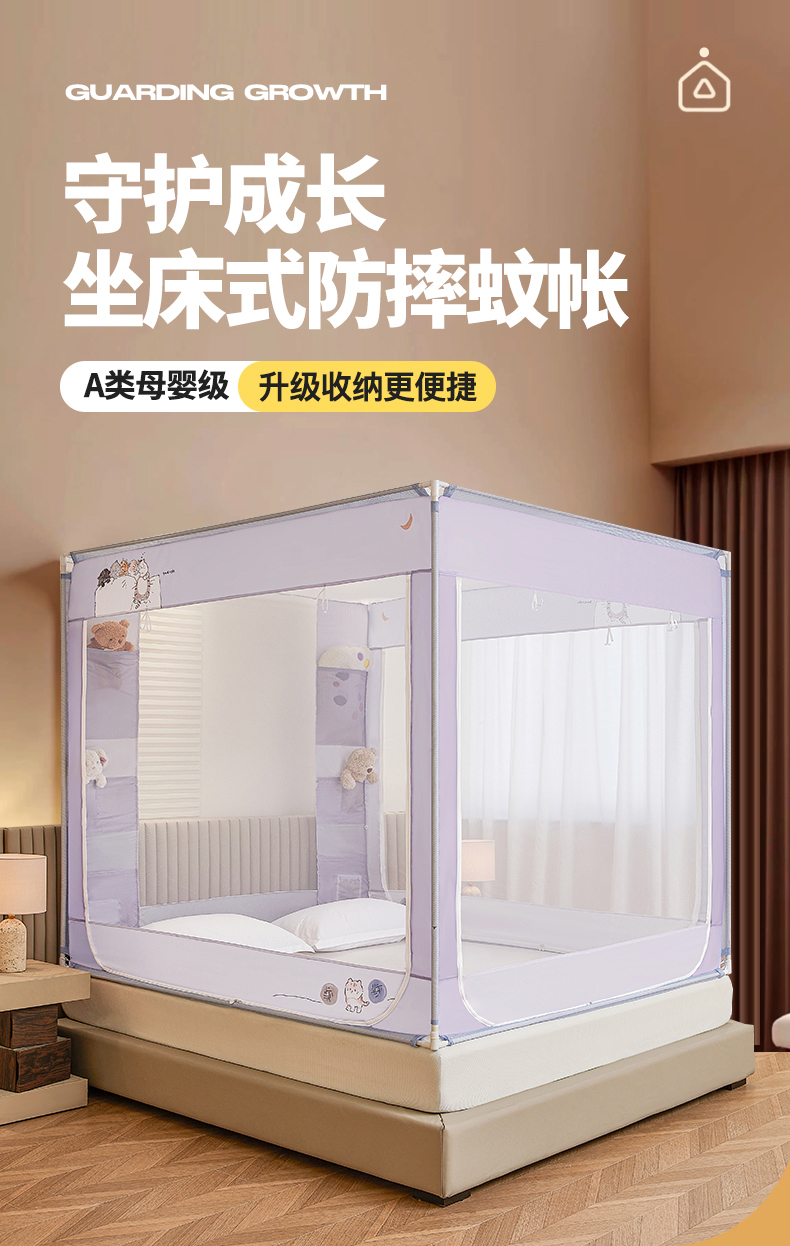 当前位置: 91家纺网 > 商品网购 > 床上用品 > 蚊帐 > 坐床式蚊帐 > 青竹苑 2026新款贴布口袋款床笠底坐床蚊帐 猫猫晚安