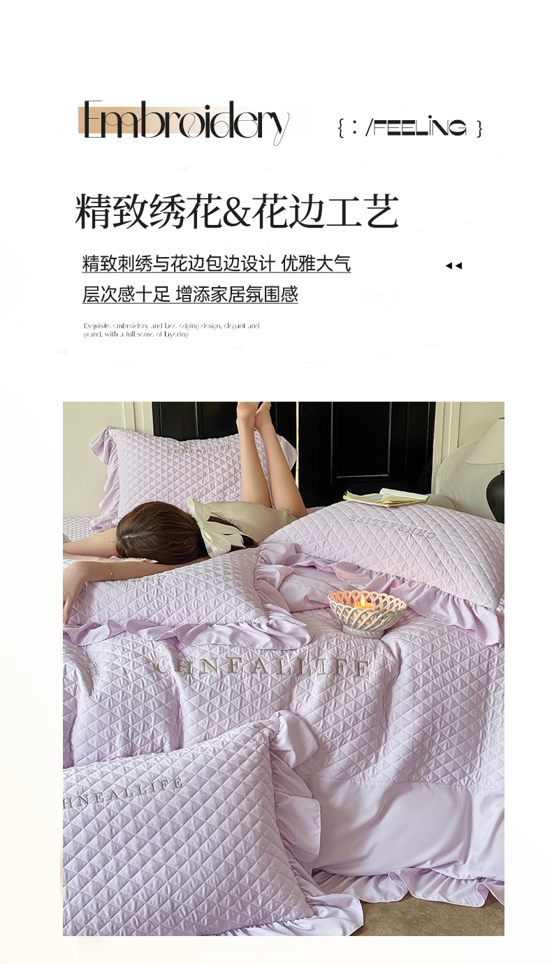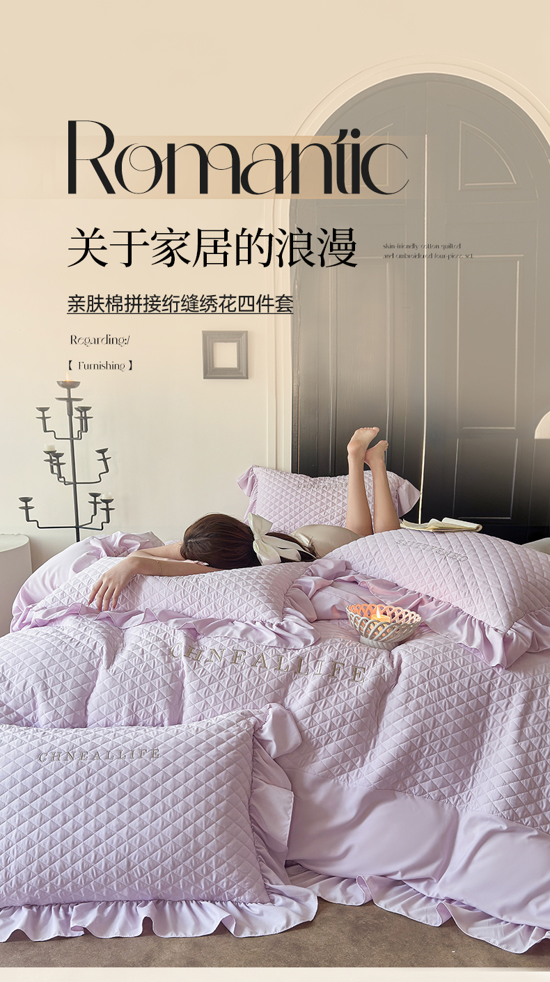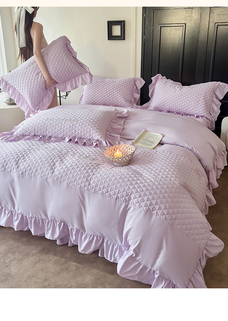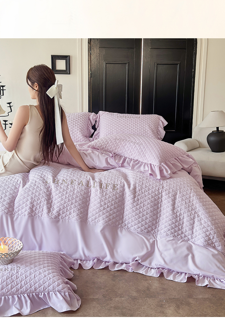当前位置: 91家纺网 > 商品网购 > 床品套件 > 四件套 > 化纤活性四件套 > 豪美鑫 2026新款绗缝绣花四件套-可可小姐系列 可可小姐-淡紫色
