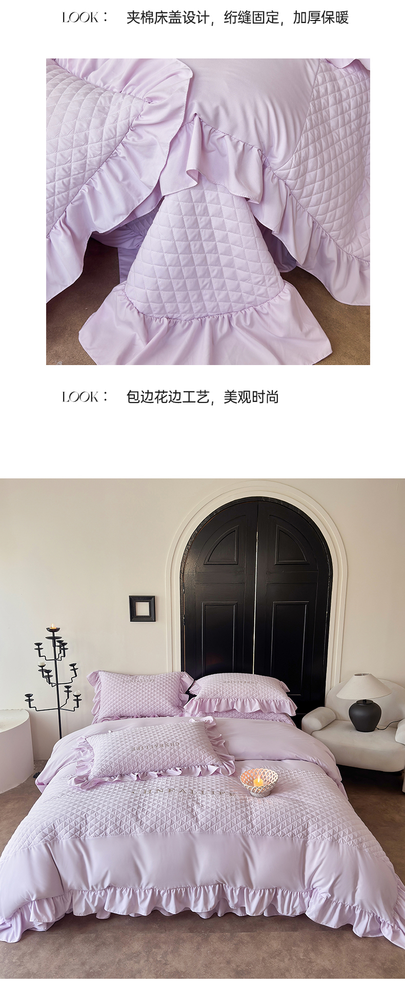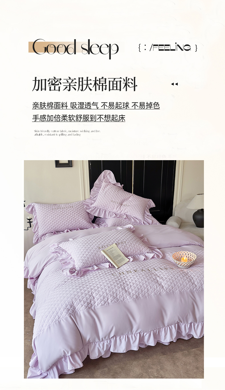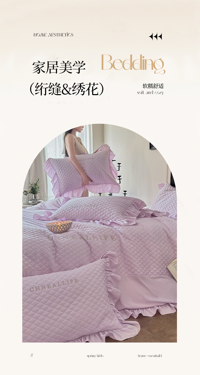 当前位置: 91家纺网 > 商品网购 > 床品套件 > 四件套 > 化纤活性四件套 > 豪美鑫 2026新款绗缝绣花四件套-可可小姐系列 可可小姐-淡紫色