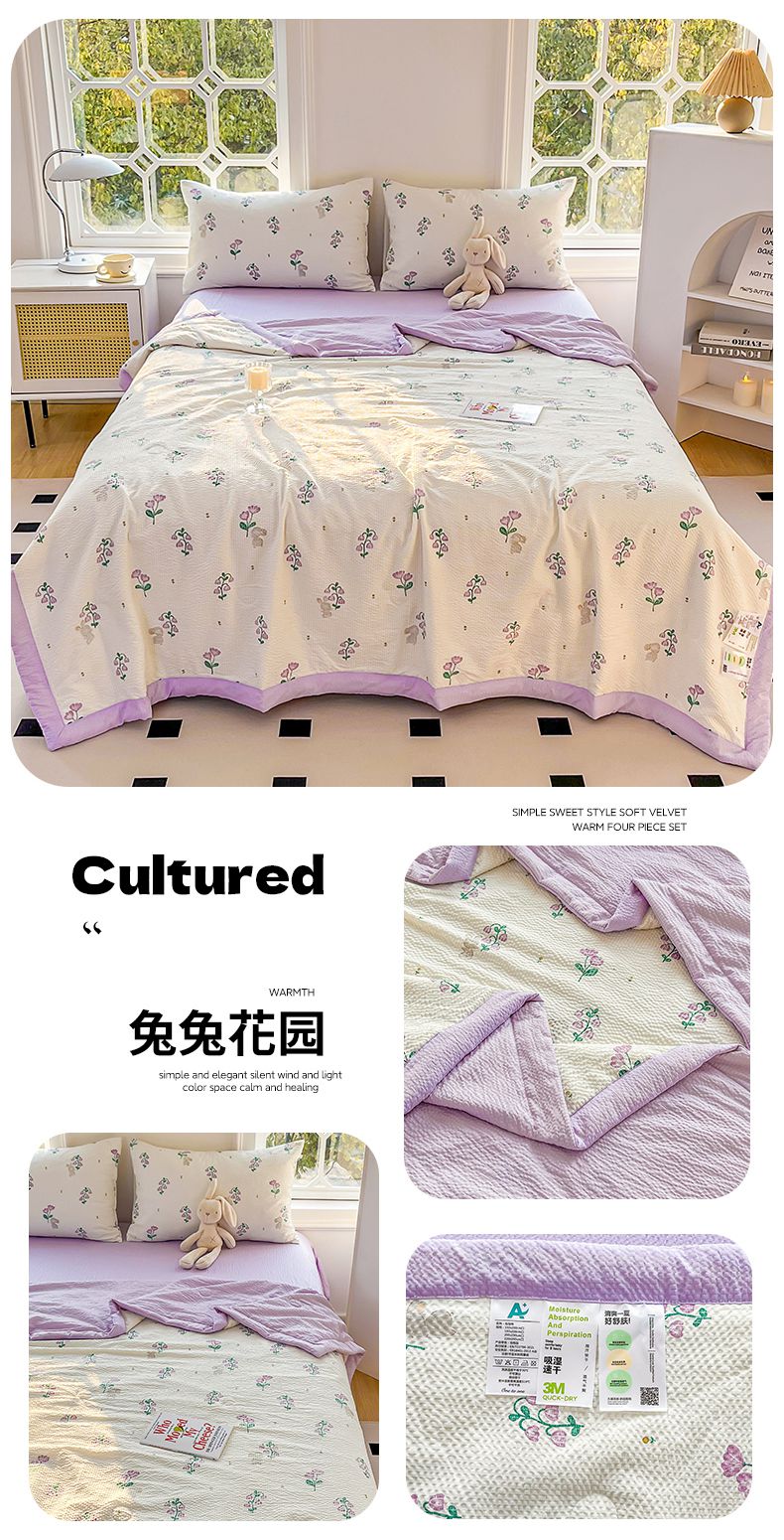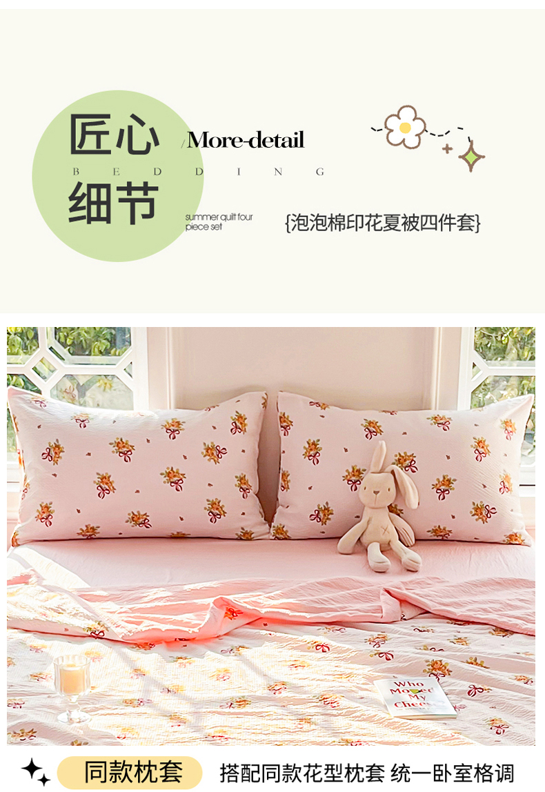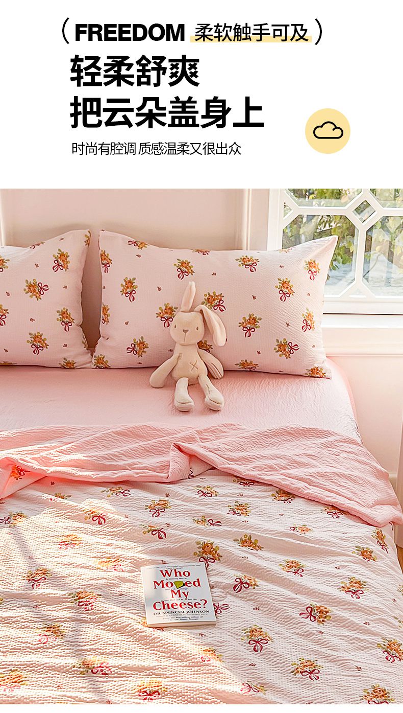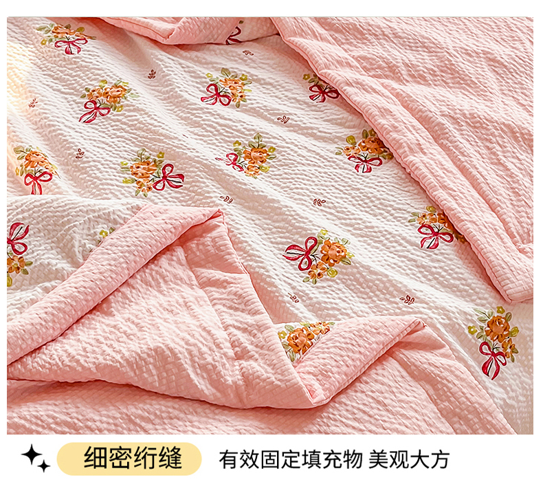 当前位置: 91家纺网 > 商品网购 > 被子 > 夏被 > 默忆 2026新款A类泡泡棉夏被泡芙棉印花夏被四件套空调被夏凉被 手捧花粉