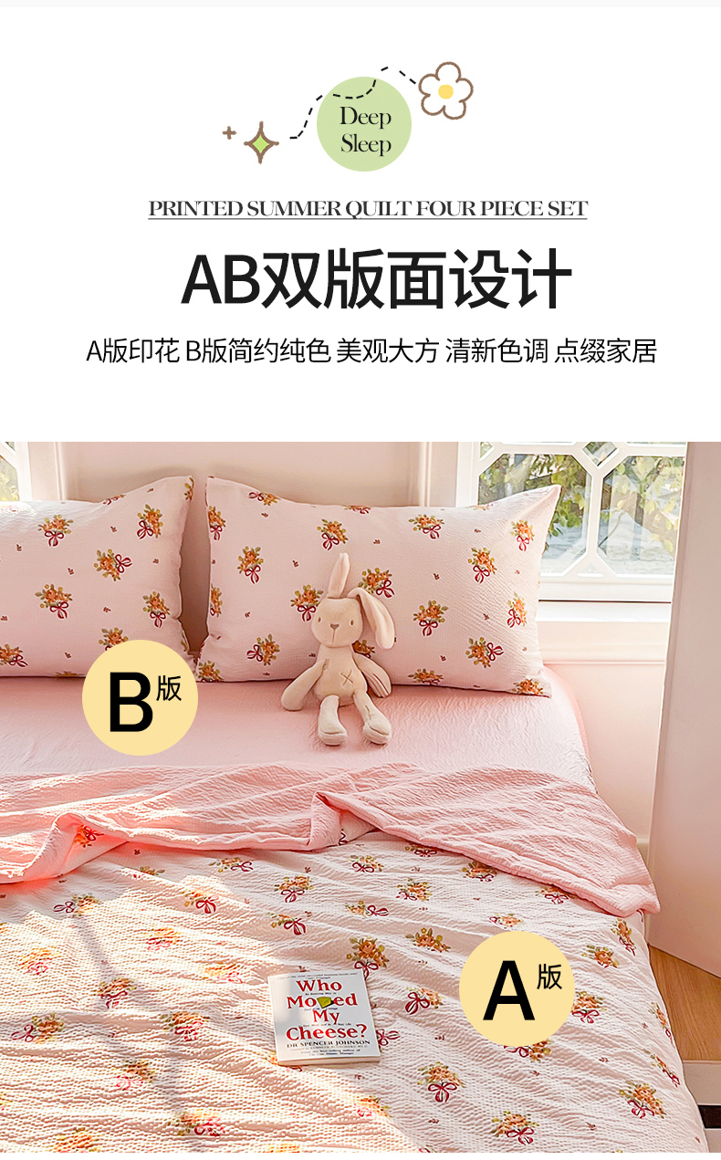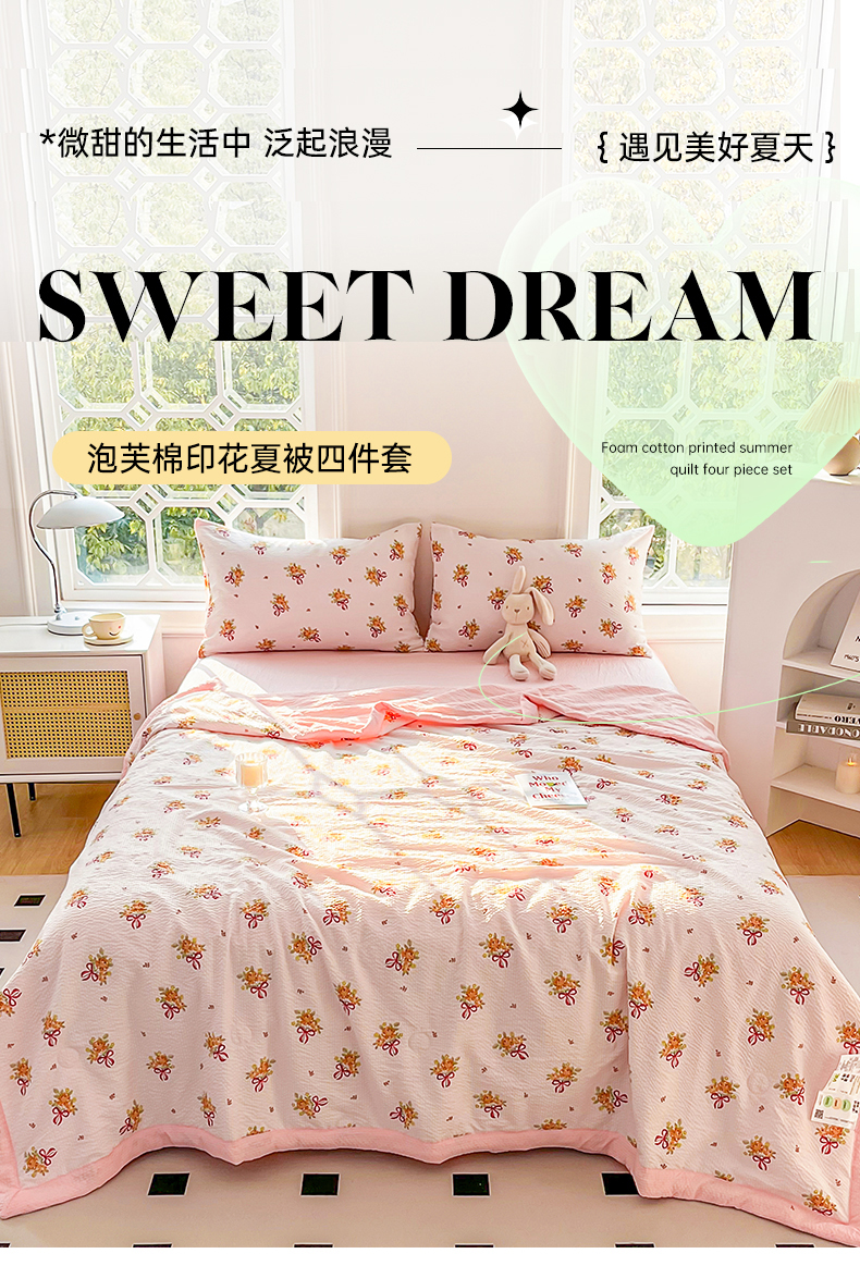 • 91家纺网 家纺一手货源 找家纺 默忆 2026新款A类泡泡棉夏被泡芙棉印花夏被四件套空调被夏凉被 手捧花粉