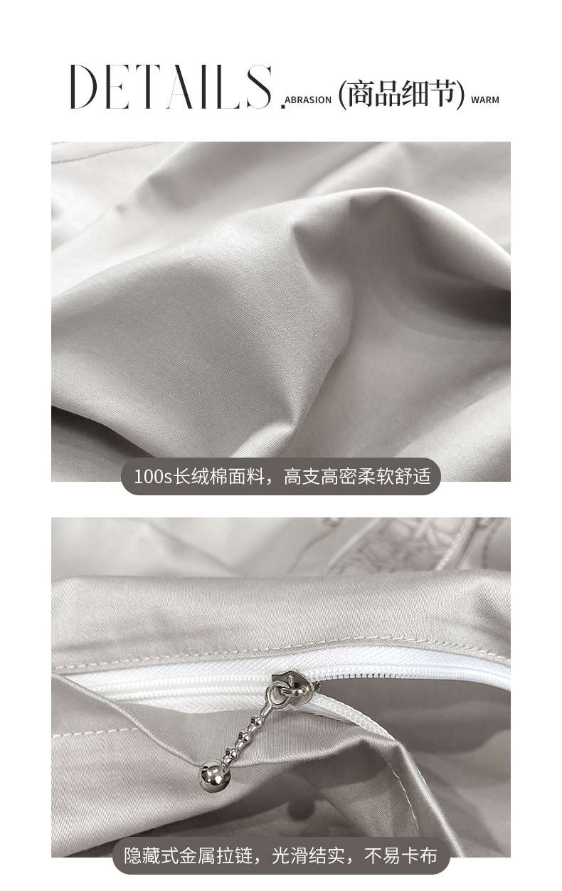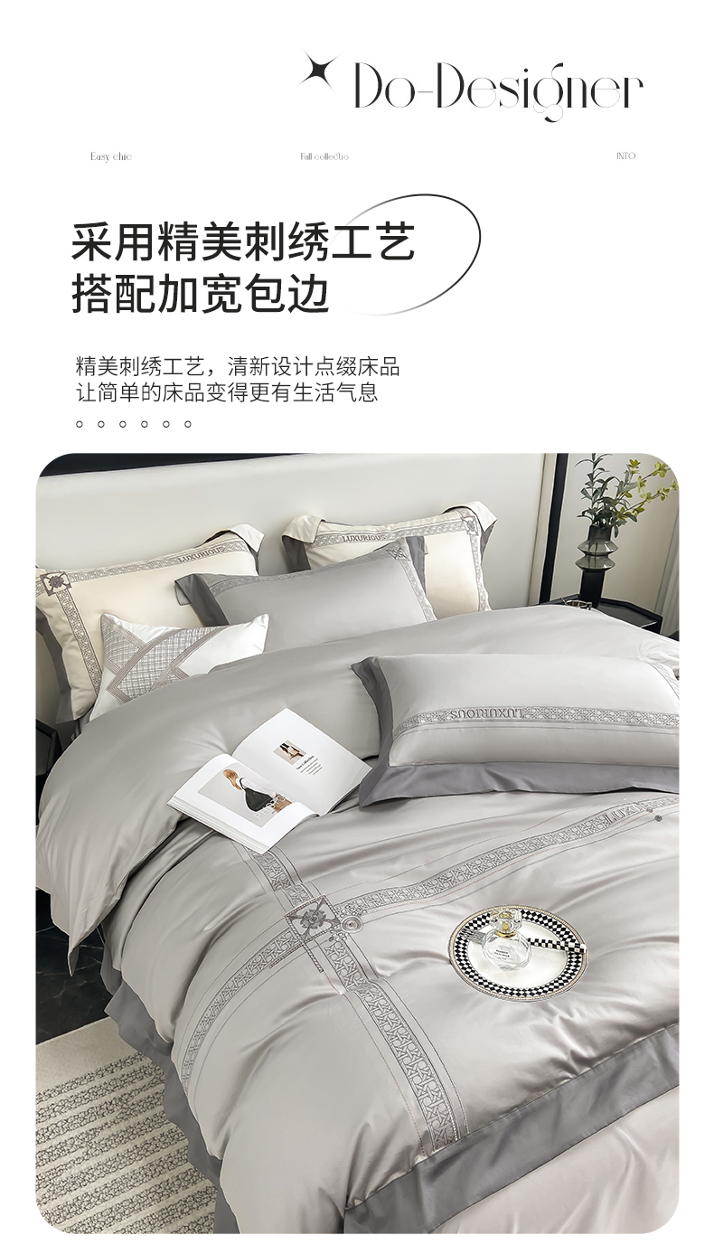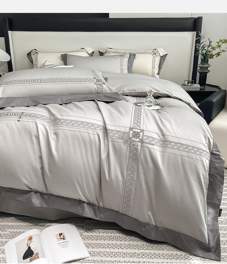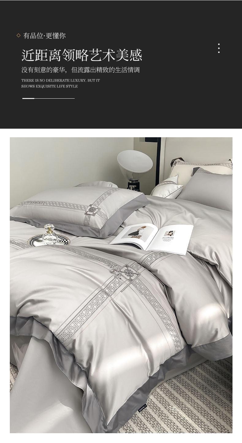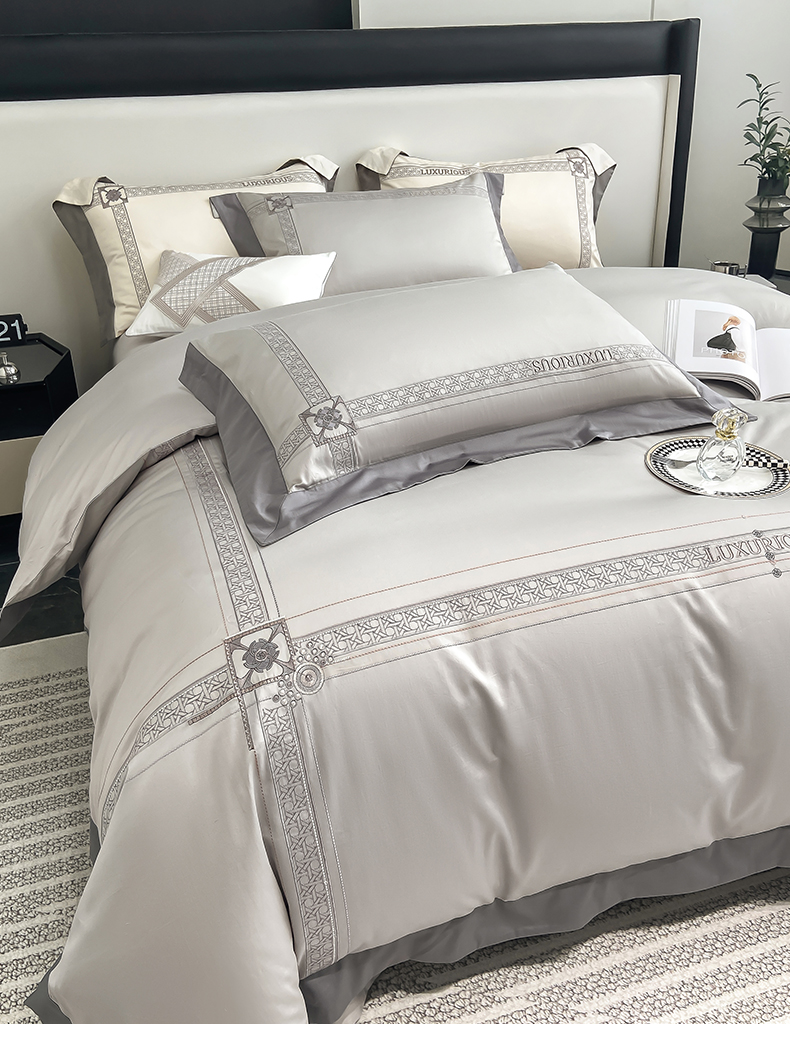 当前位置: 91家纺网 > 商品网购 > 床品套件 > 四件套 > 长绒棉四件套 > 家居1号家纺 2026新款50双股轻奢长绒棉刺绣四件套-图兰 图兰-高级灰