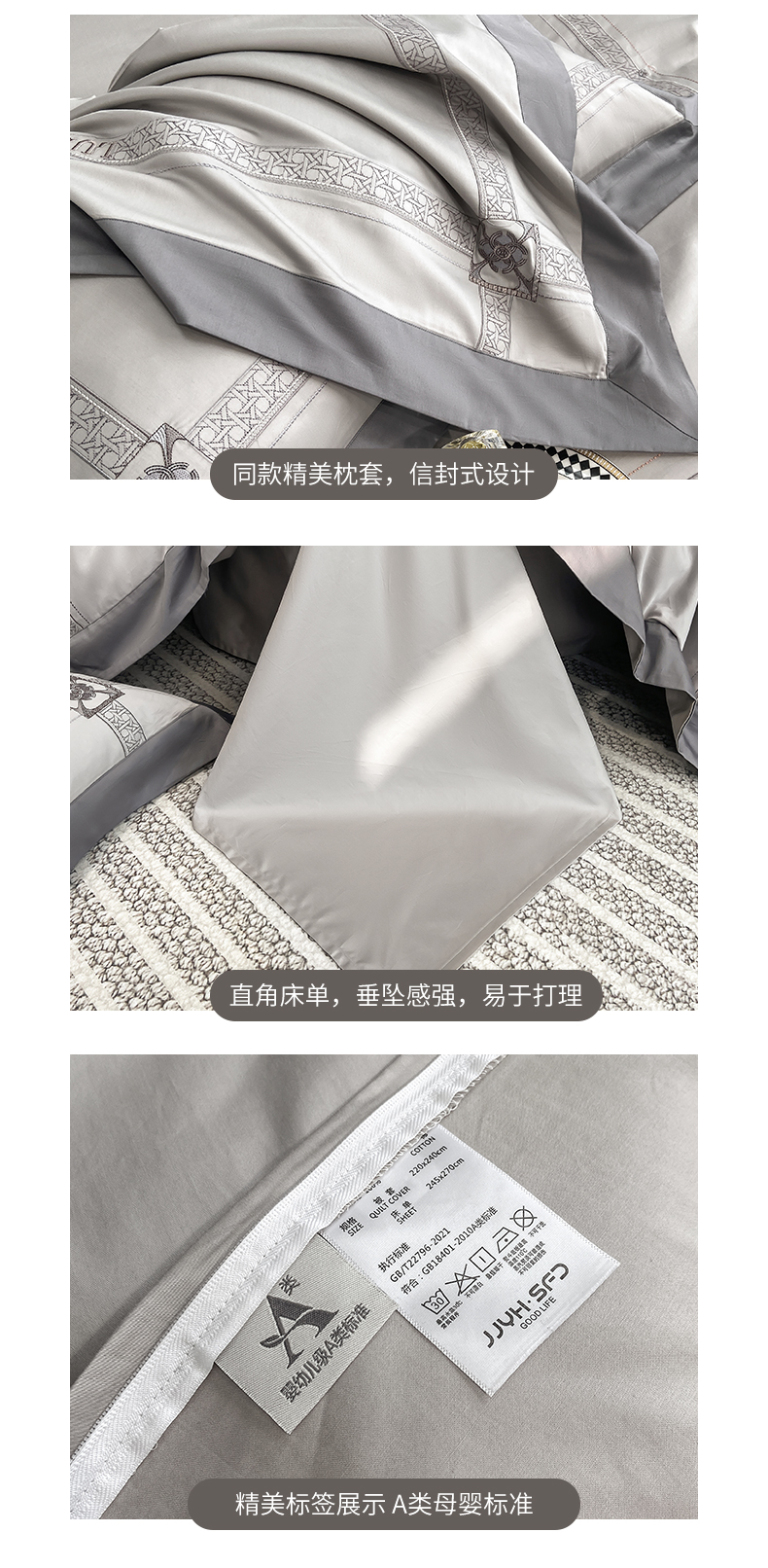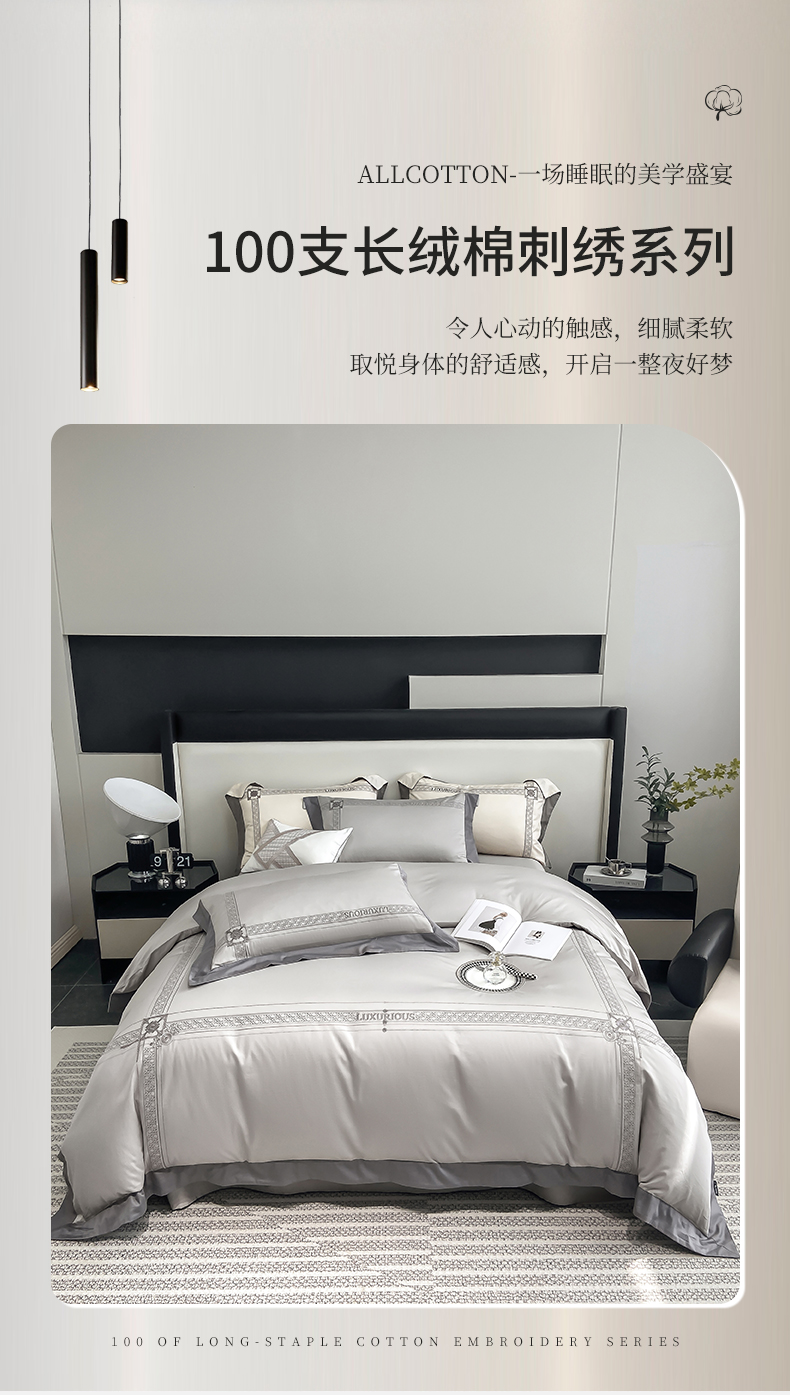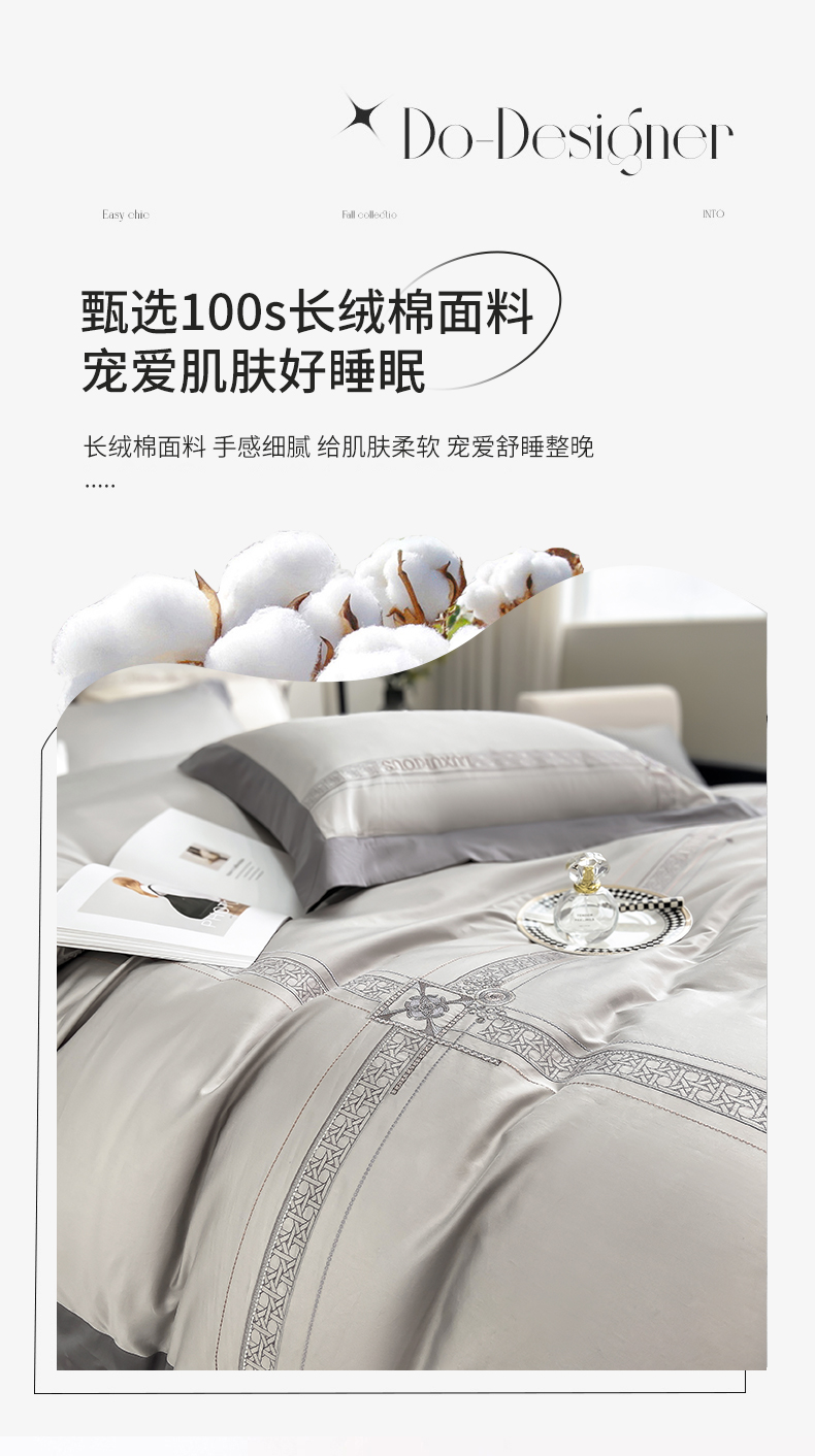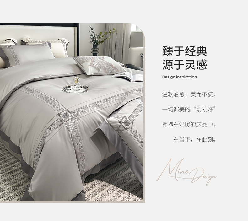 当前位置: 91家纺网 > 商品网购 > 床品套件 > 四件套 > 长绒棉四件套 > 家居1号家纺 2026新款50双股轻奢长绒棉刺绣四件套-图兰 图兰-高级灰