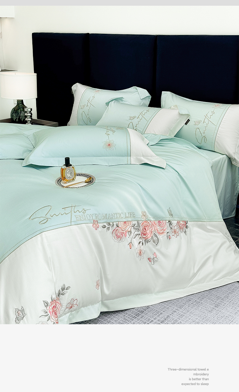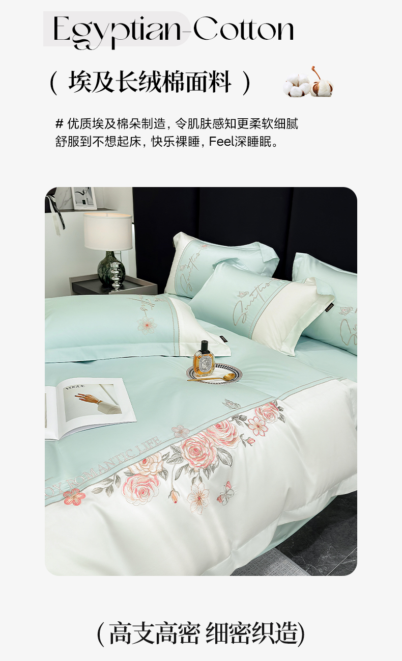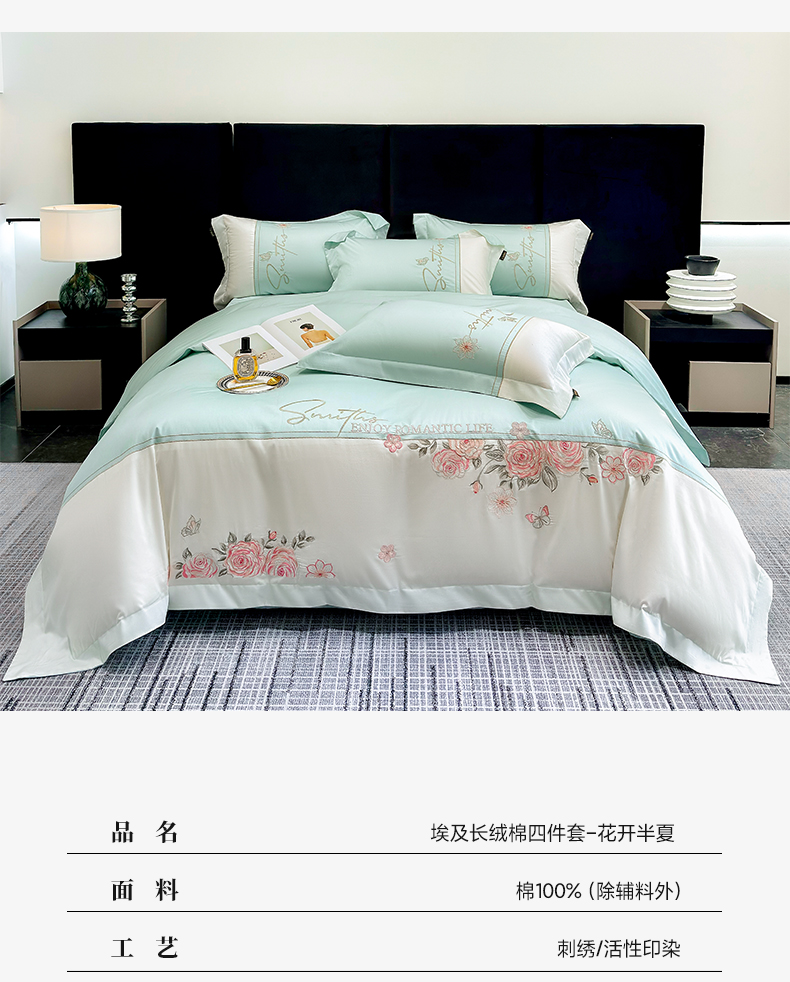 当前位置: 91家纺网 > 商品网购 > 床品套件 > 四件套 > 长绒棉四件套 > (总)欣宜家纺 2026新款100支全棉纯棉50x50s埃及贡缎长绒棉刺绣绣花四件套-花开半夏系列