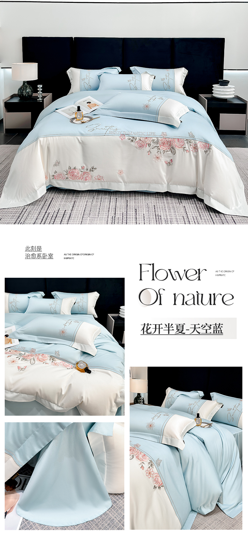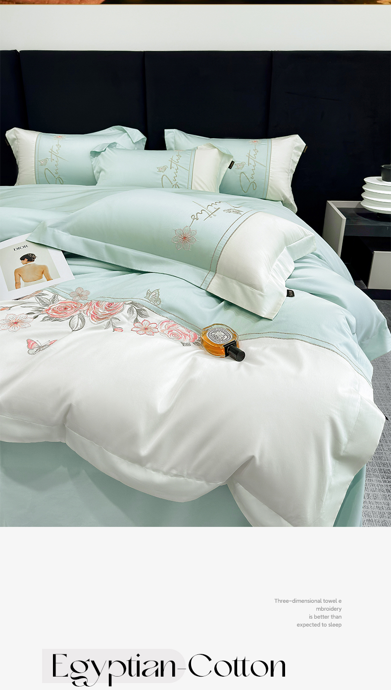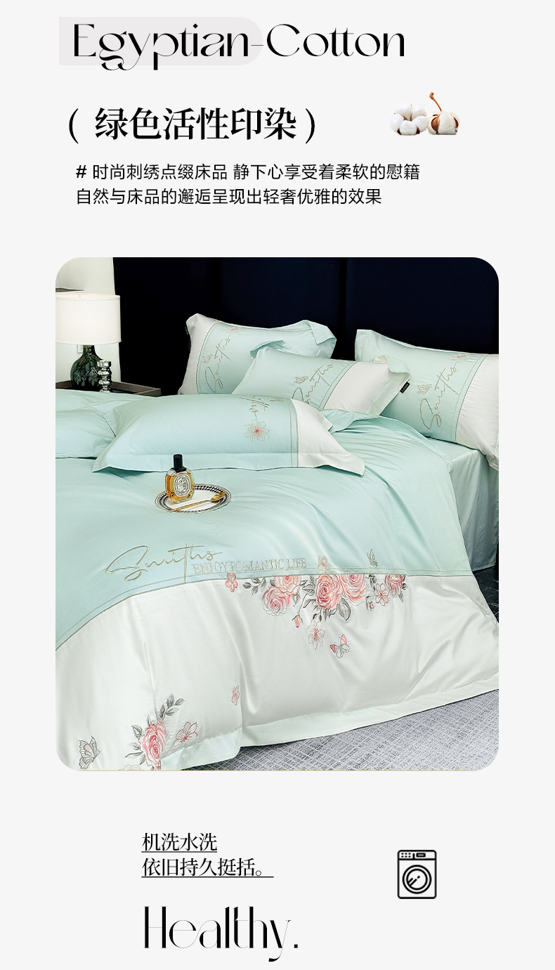 当前位置: 91家纺网 > 商品网购 > 床品套件 > 四件套 > 长绒棉四件套 > (总)欣宜家纺 2026新款100支全棉纯棉50x50s埃及贡缎长绒棉刺绣绣花四件套-花开半夏系列