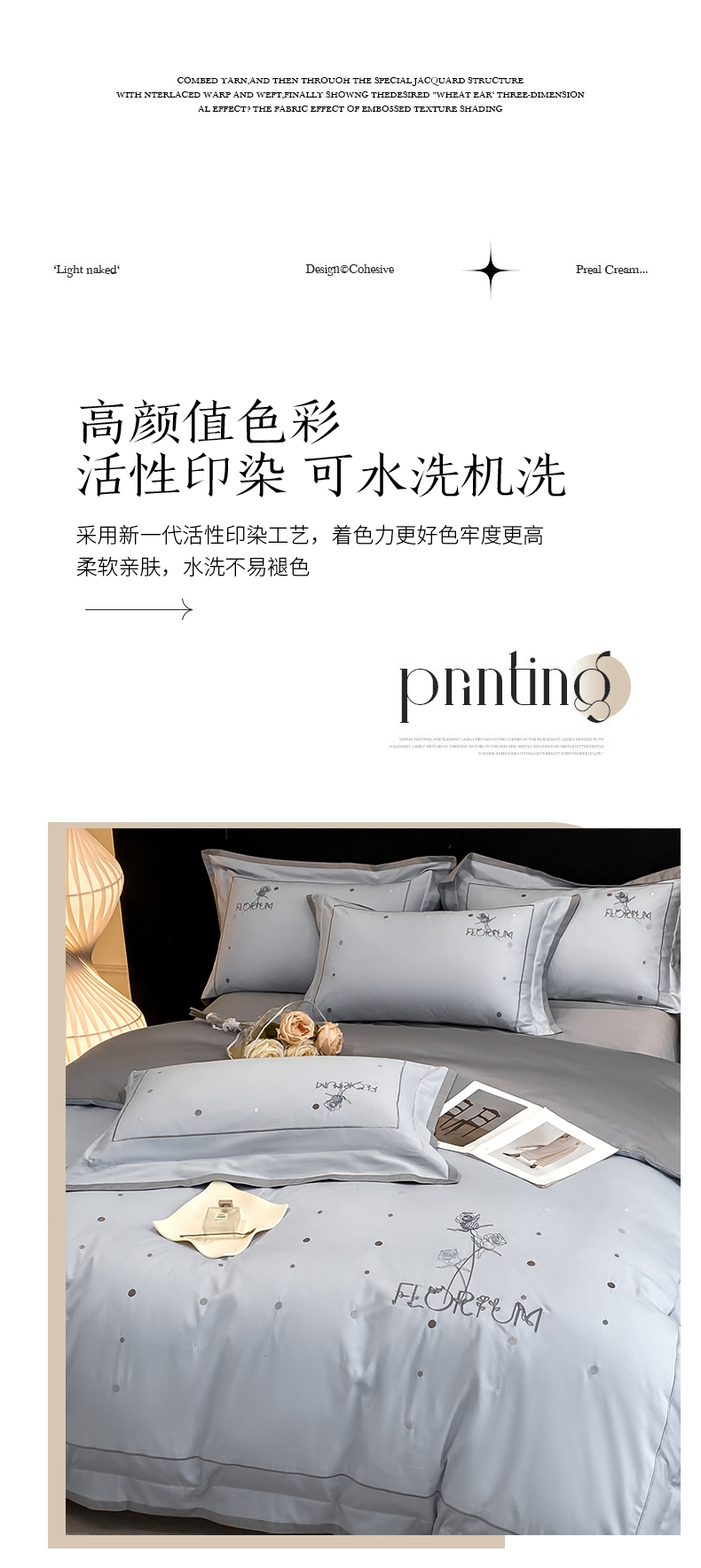 (总)家居1号家纺 2025新款花韵长绒棉四件套,花韵-白拼粉,花韵-冰海蓝,花韵-淡雅灰,花韵-玫瑰粉,花韵-温馨蓝