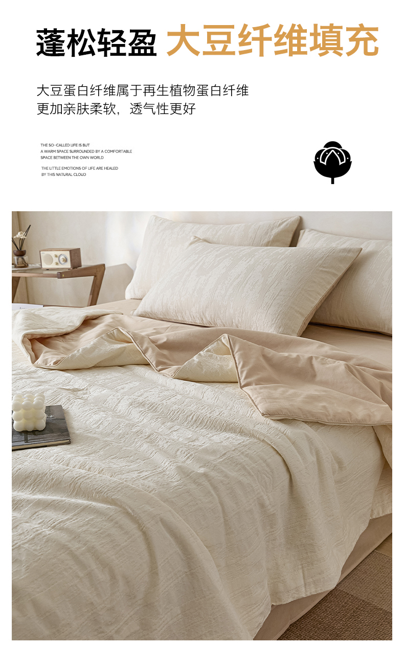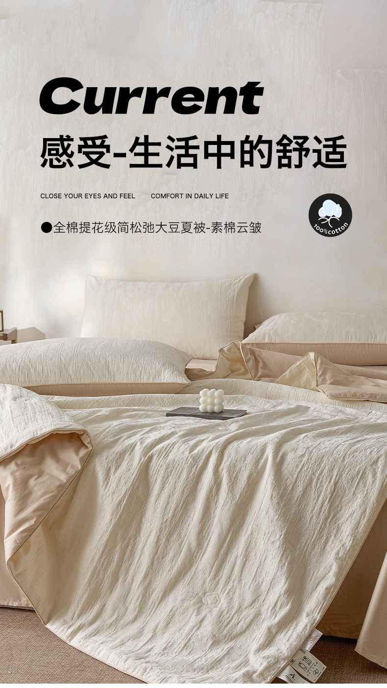 一加一 2026新款全棉提花级简松弛大豆夏被-素棉云皱 里约