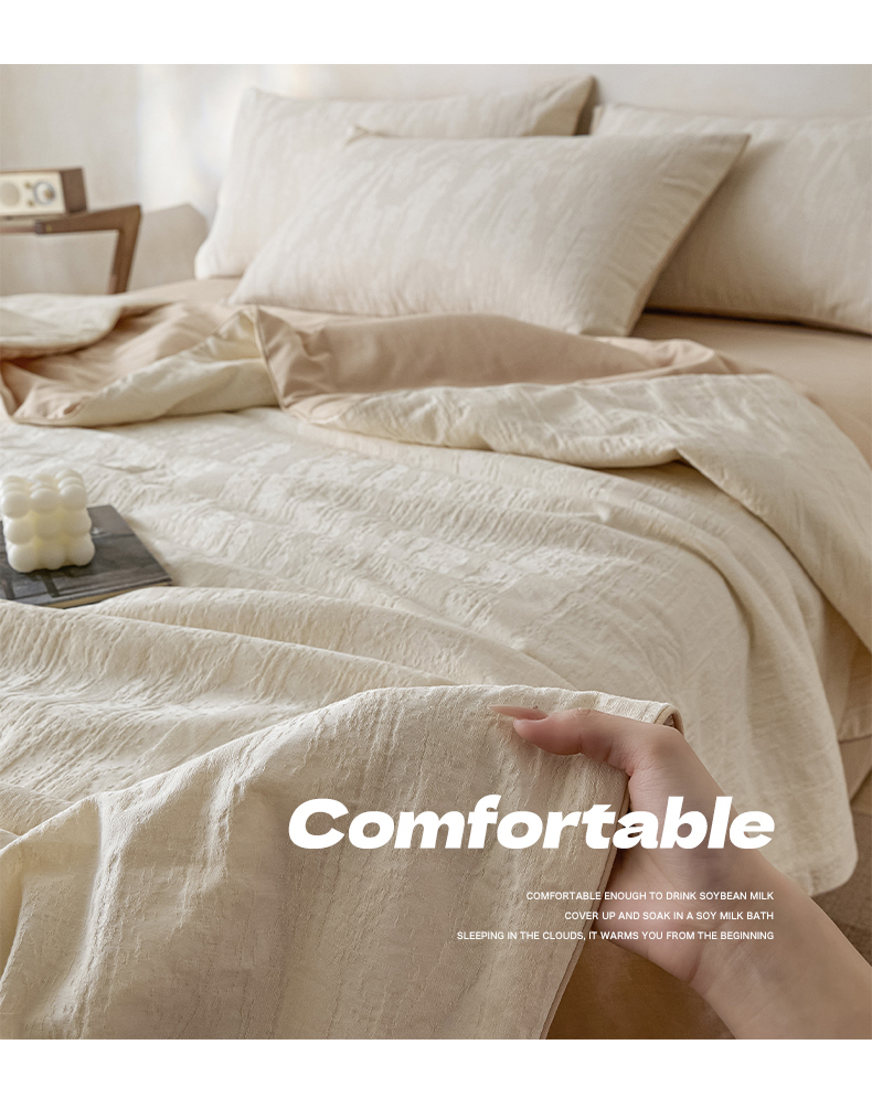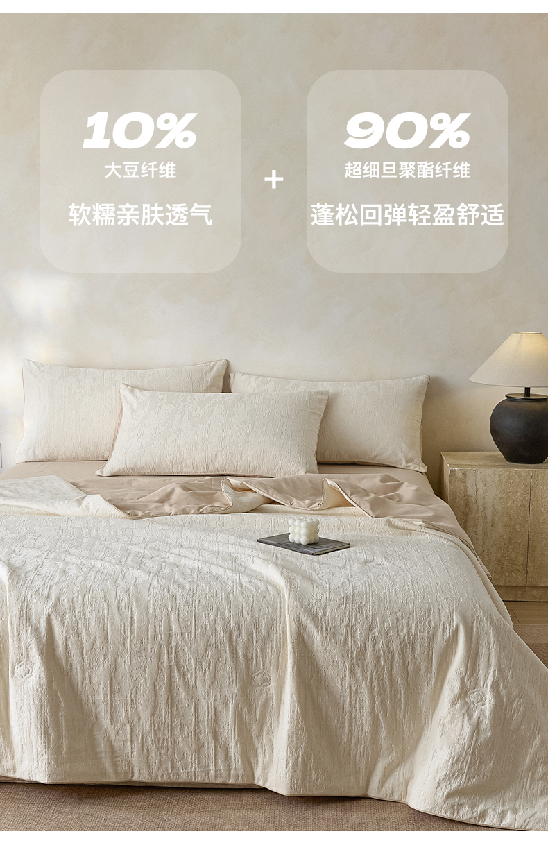 • 91家纺网 家纺一手货源 找家纺 一加一 2026新款全棉提花级简松弛大豆夏被-素棉云皱 里约