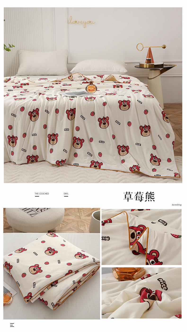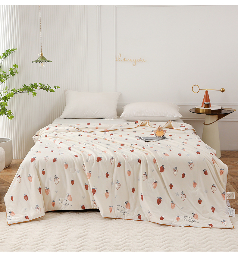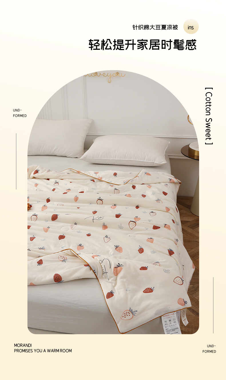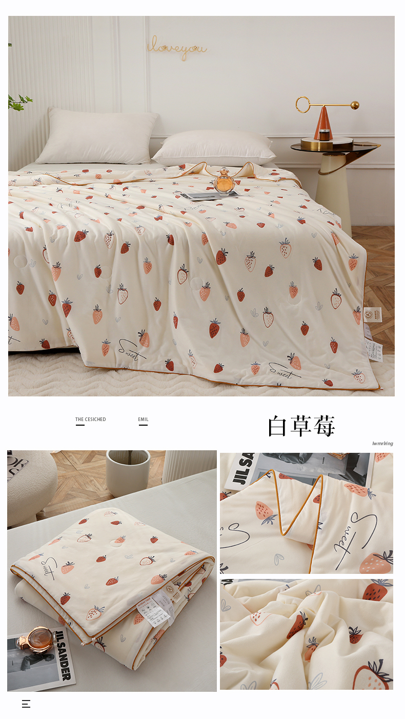 商品名称:薇玛仕 2026新款A类牛奶丝针织棉印花大豆夏凉被空调被儿童被 白草莓