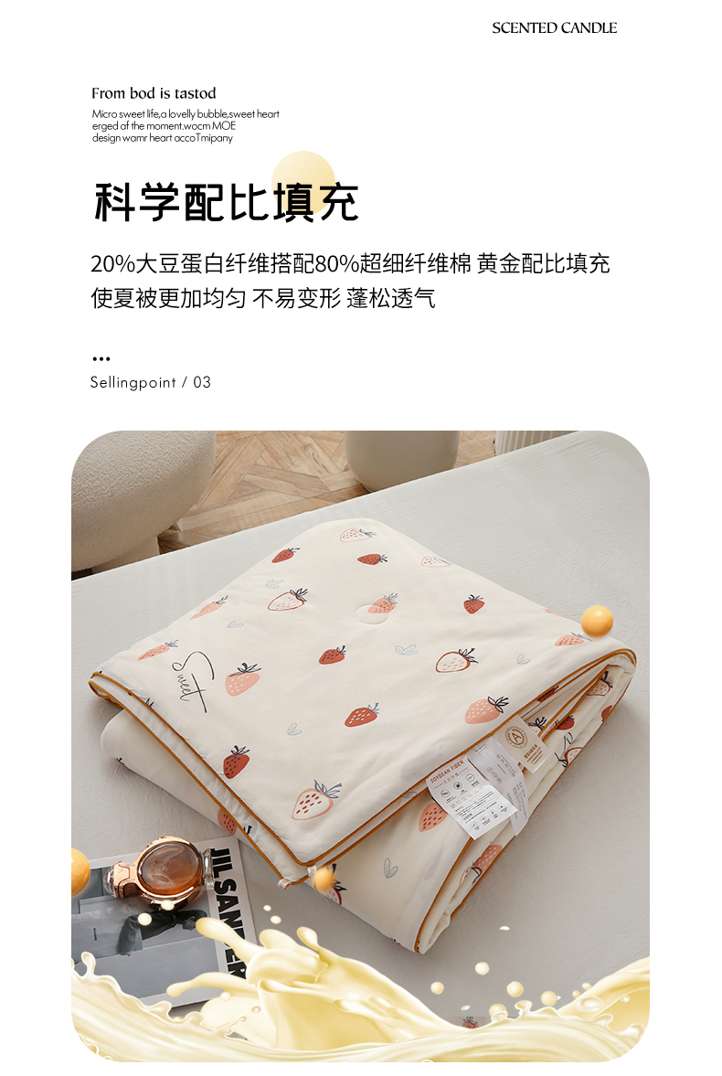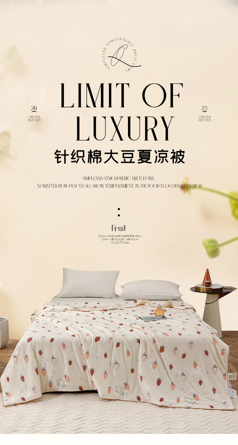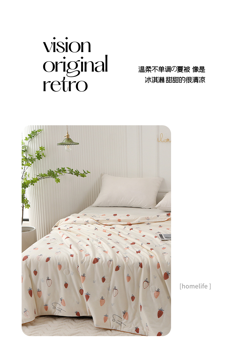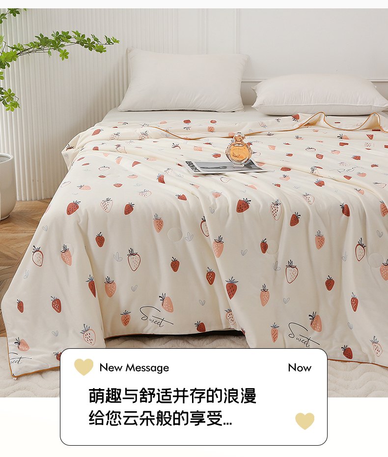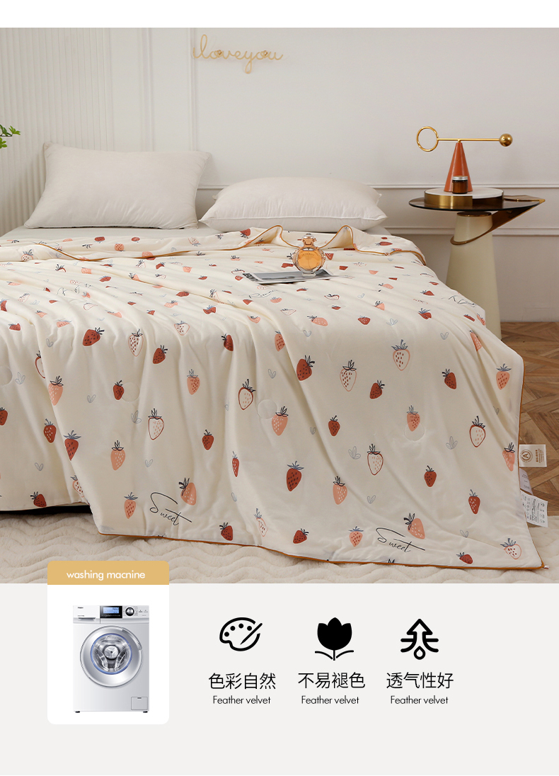 商品名称:薇玛仕 2026新款A类牛奶丝针织棉印花大豆夏凉被空调被儿童被 白草莓
