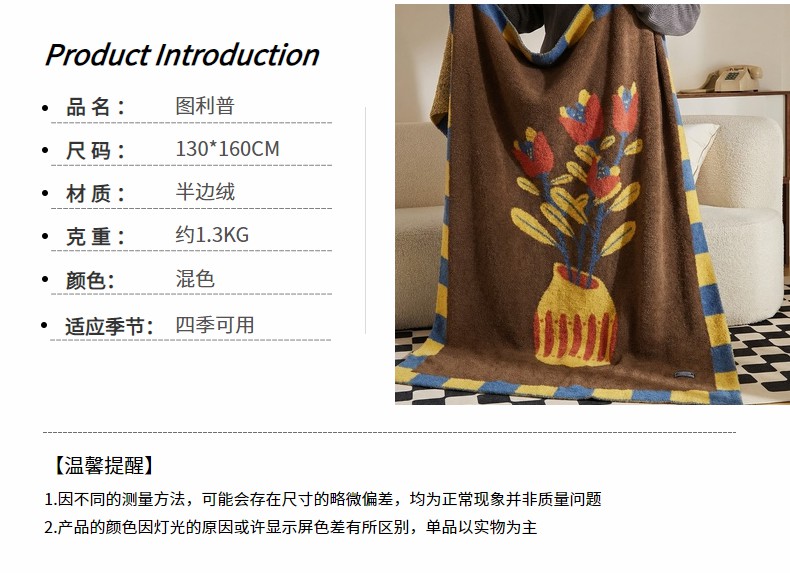 商品名称:(总)暖绵绵家纺 2026新款艺术风沙发盖毯卧室装饰毯-图利普(券后/折后零售价不得低于173元)