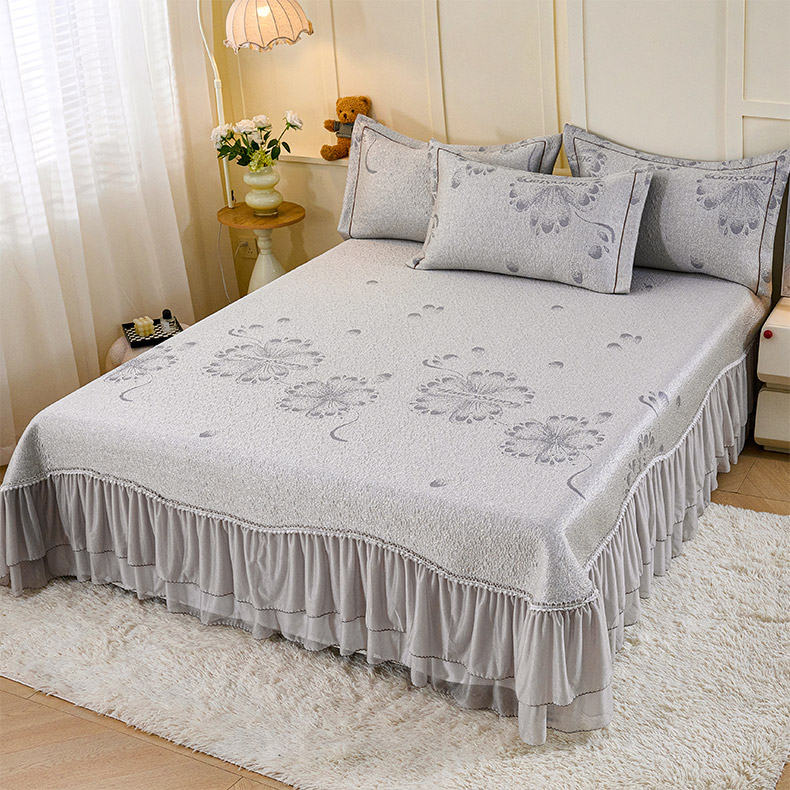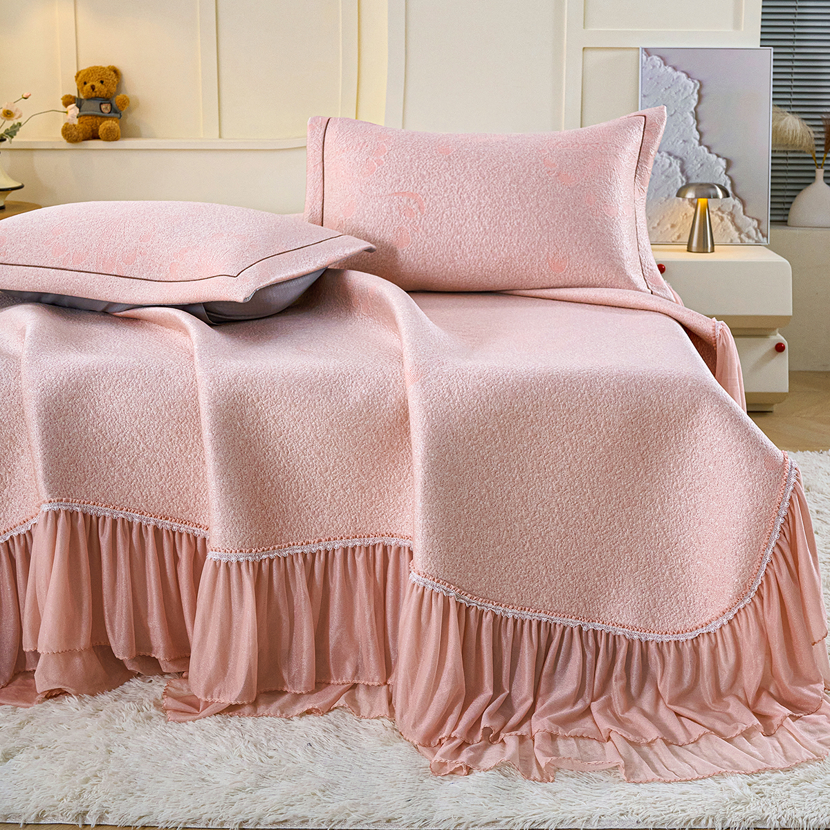 (总)梵克保罗 2026春夏新款雪纺床盖夏被四件套单夏被床盖三件套,奶茶色,嫩芽绿,浅米色,仙气紫,玉芙蓉