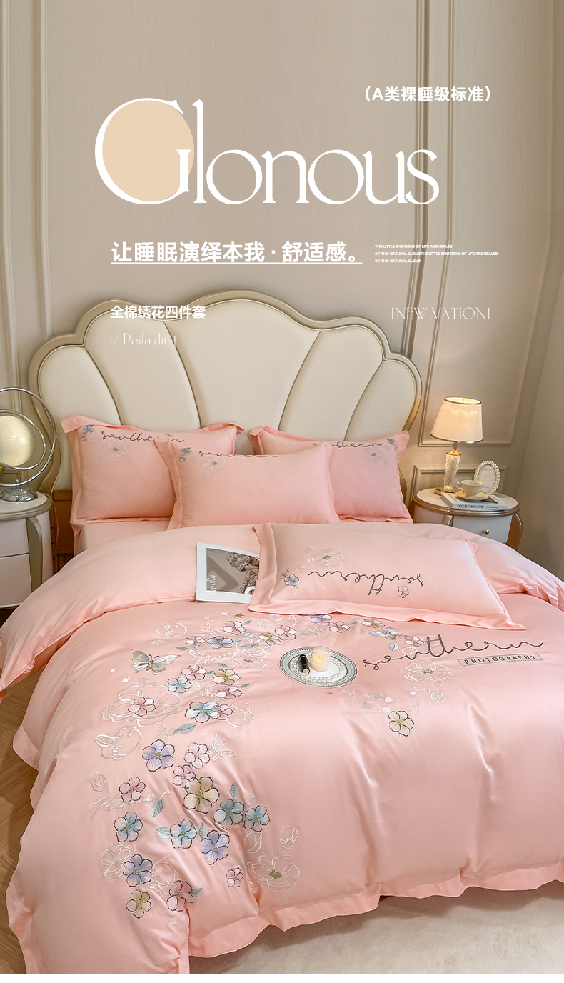 当前位置: 91家纺网 > 商品网购 > 床品套件 > 四件套 > 全棉普通四件套 > 博纳家纺 2026春夏新款13372全棉纯棉绣花四件套-奈雪 奈雪-粉玉
