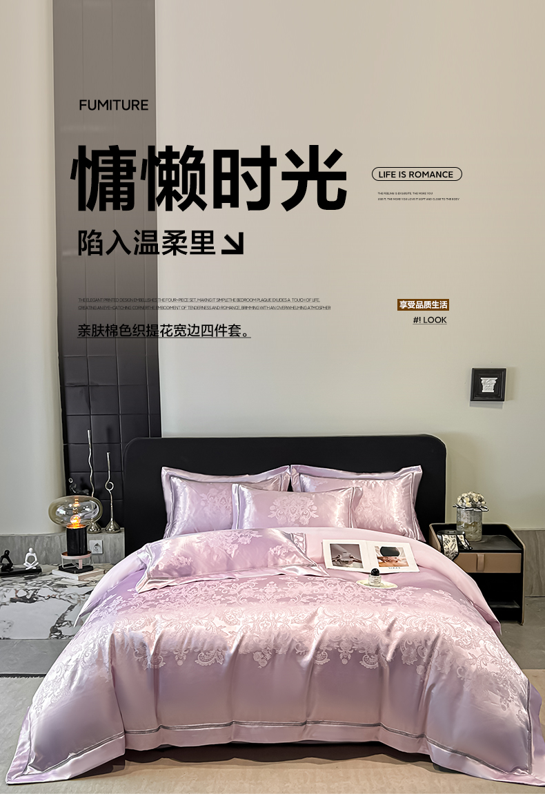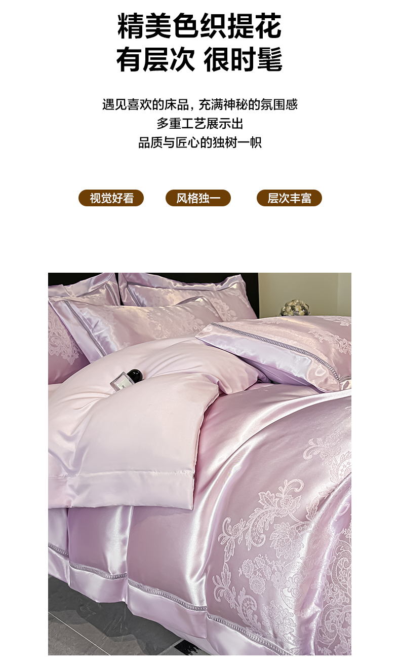 当前位置: 91家纺网 > 商品网购 > 床品套件 > 四件套 > 其它四件套 > (总)博纳家纺 2026春夏新款轻奢高端色织定位提花拼角镂空款款四件套-沁园花语