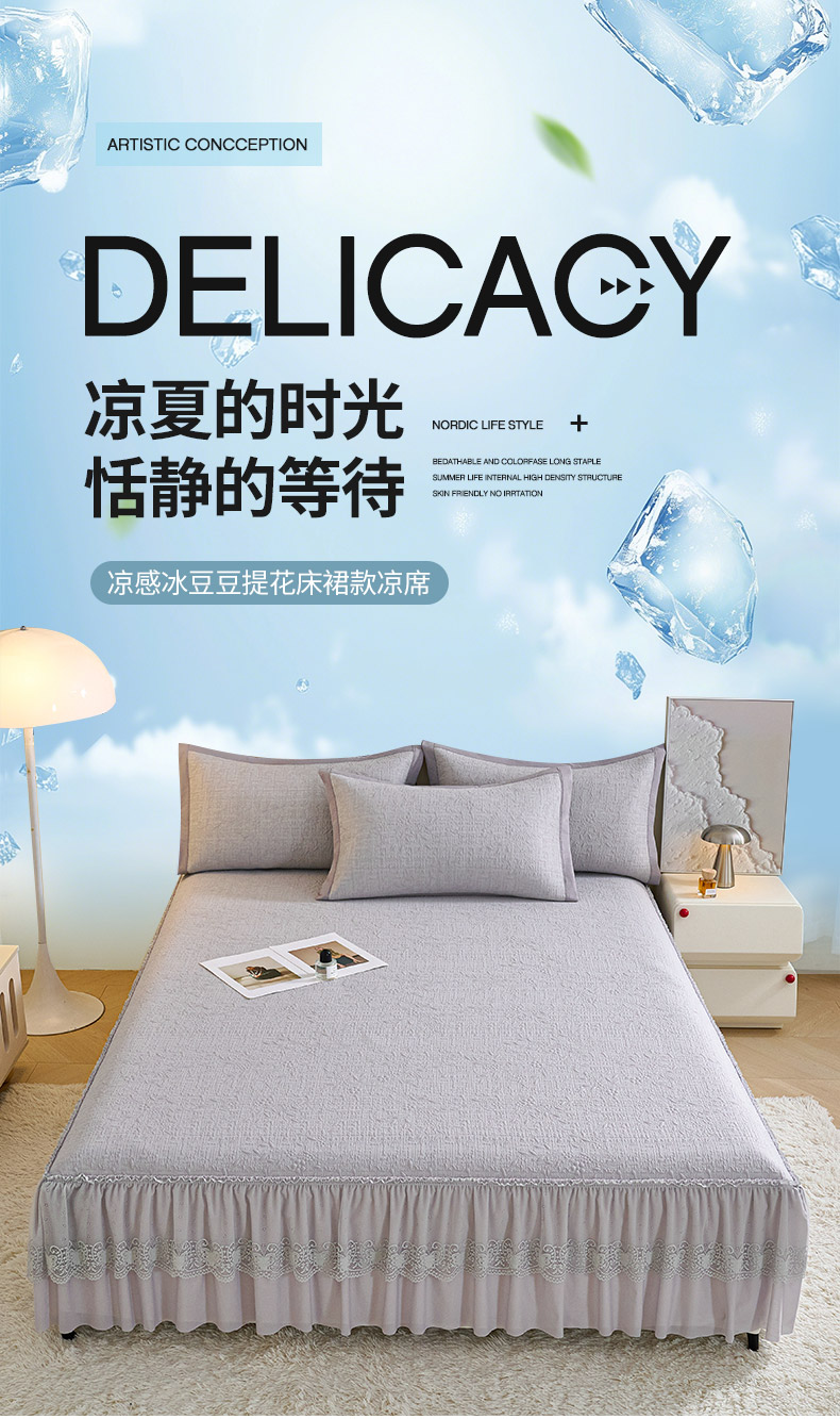 商品名称:梵克保罗 2026新款A类凉感豆豆席床裙款凉席席子-唯美 床裙款-唯美蓝色