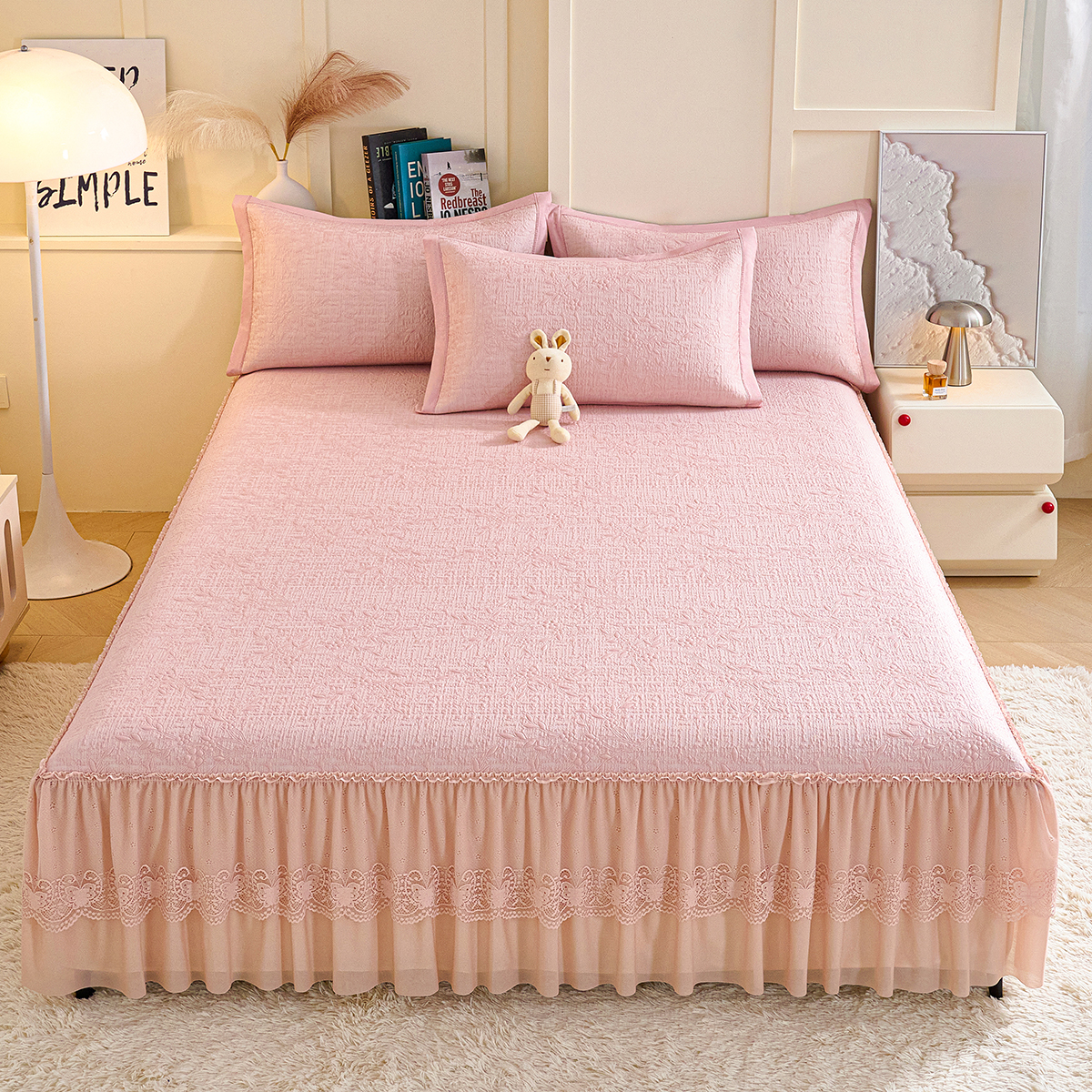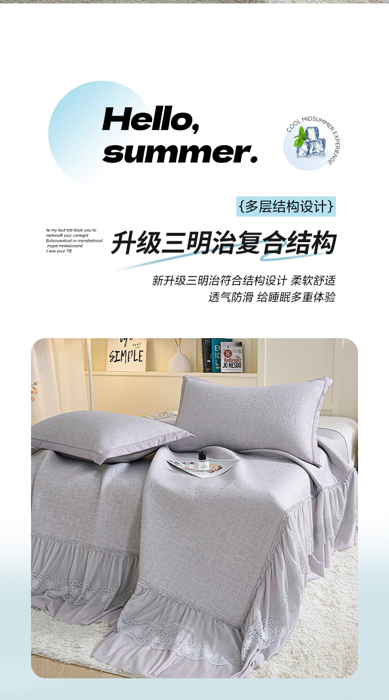 (总)梵克保罗 2026春夏新款雪纺床盖夏被四件套单夏被床盖三件套,奶茶色,嫩芽绿,浅米色,仙气紫,玉芙蓉