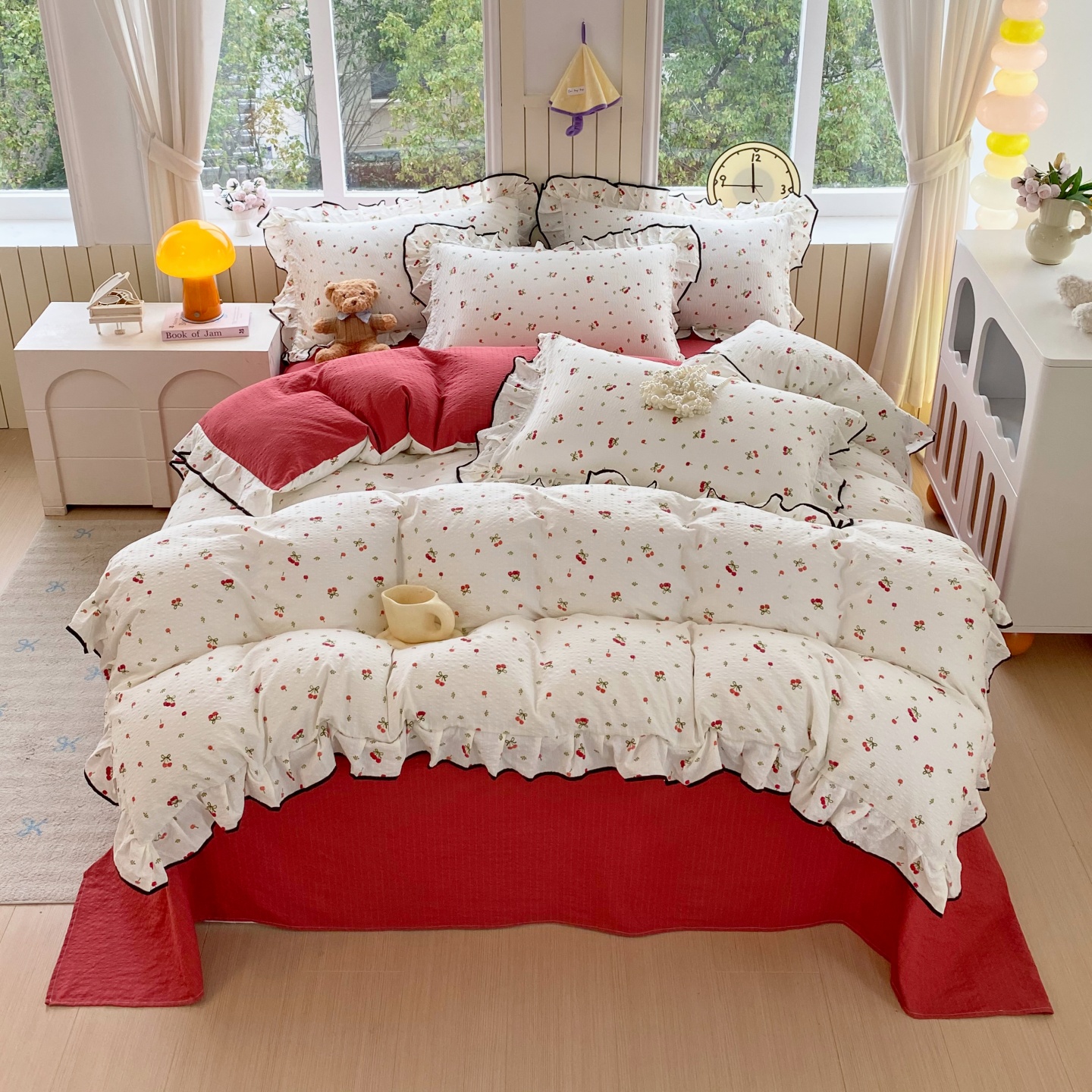 (总)艾橙家纺2025新款法式赫本风水洗棉印花雪纺花边单床盖,点点爱,朵蔓花馨,黑色蝴蝶结,蝴蝶印记,澜音花香,美味樱桃,水墨玫瑰,素馨花恋,心心相印
