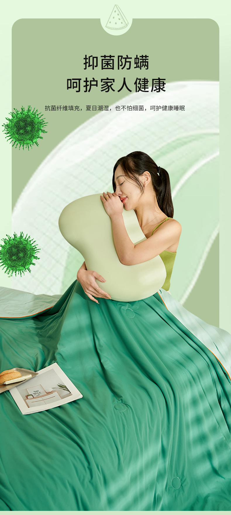 晨曦家纺 2026新款A类凉感丝清凉大豆夏被四件套-熊猫冻冻被 冻冻被-浅绿拼奶黄