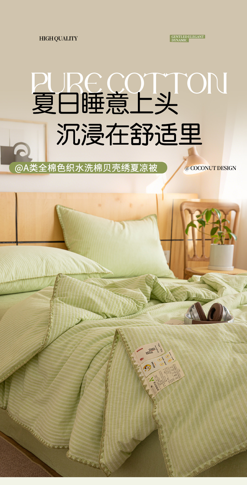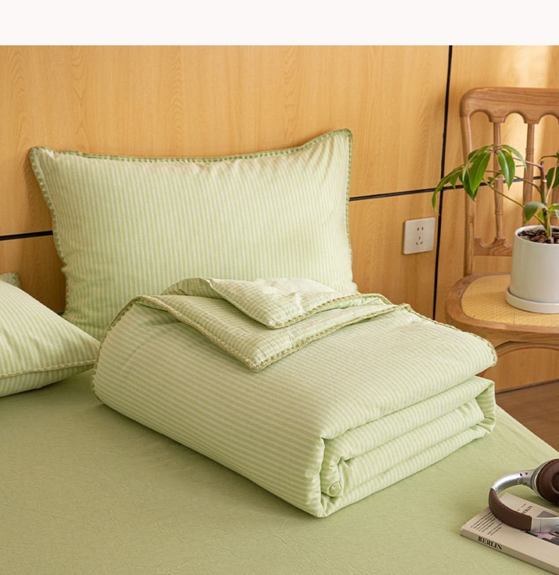 丽美人家纺 2026新款全棉色织条纹夏被夏凉被空调被 条纹绿