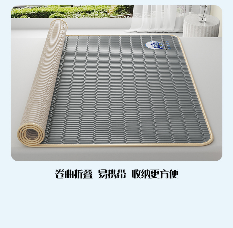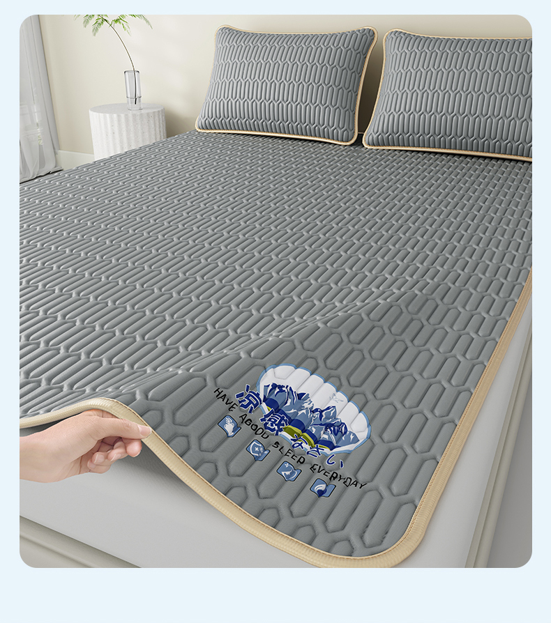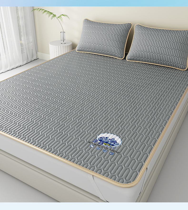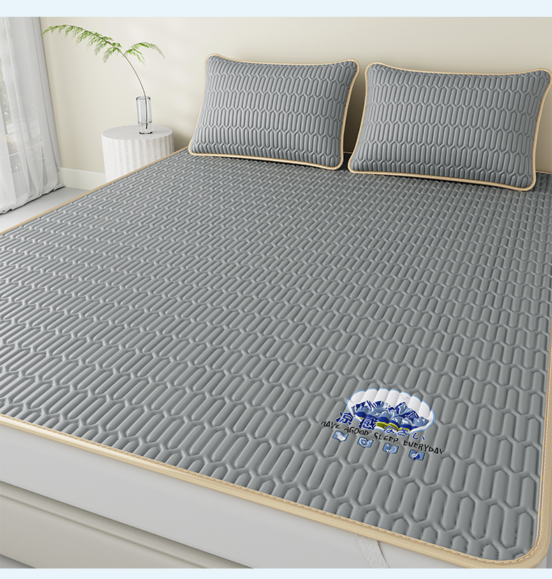 奇丝雅 2026新款夏季A类乳胶凉席冰丝席纯色家用双人冰丝凉席席子-大床 富士山-银灰