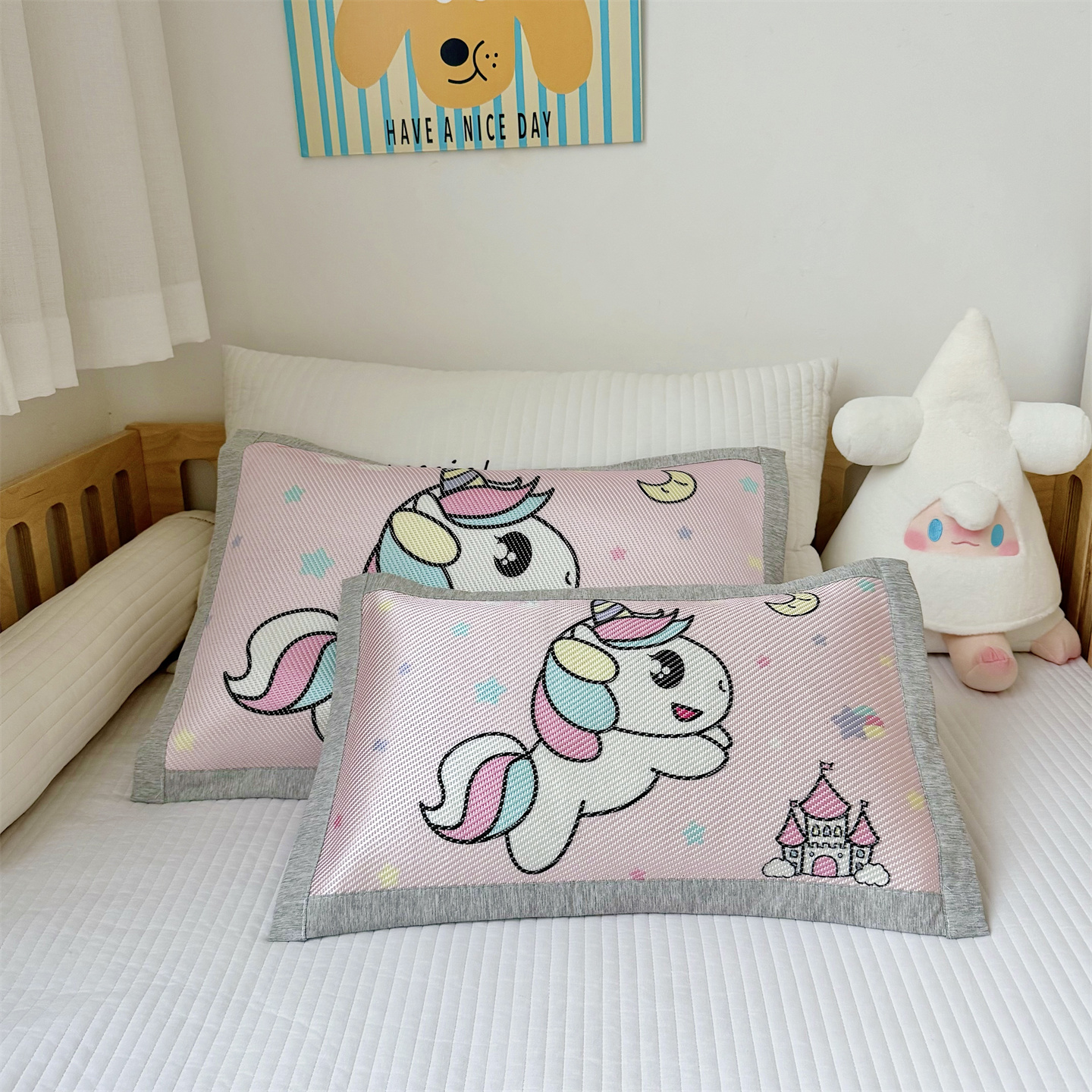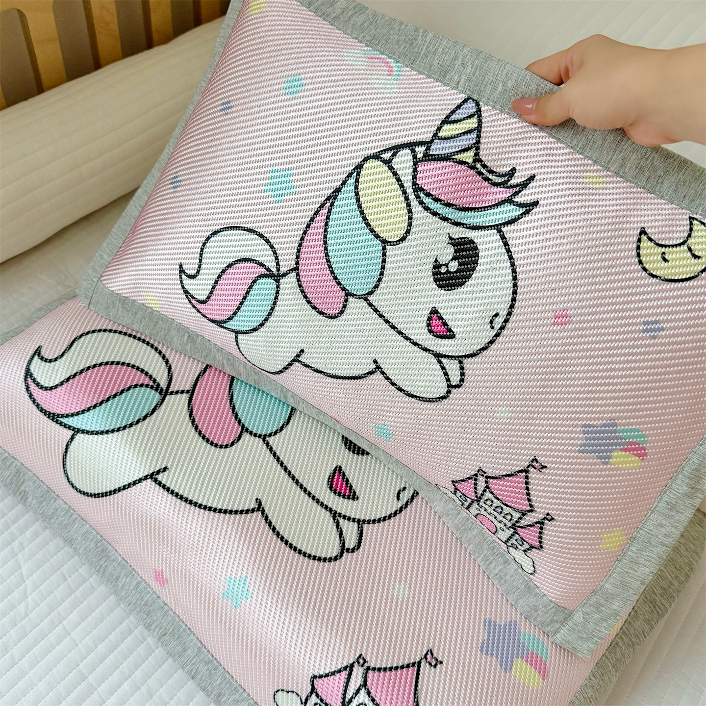 萌宝家纺 夏季A类大版儿童冰藤枕套夏季双面枕头幼儿园冰藤枕套儿童冰丝枕头 小马