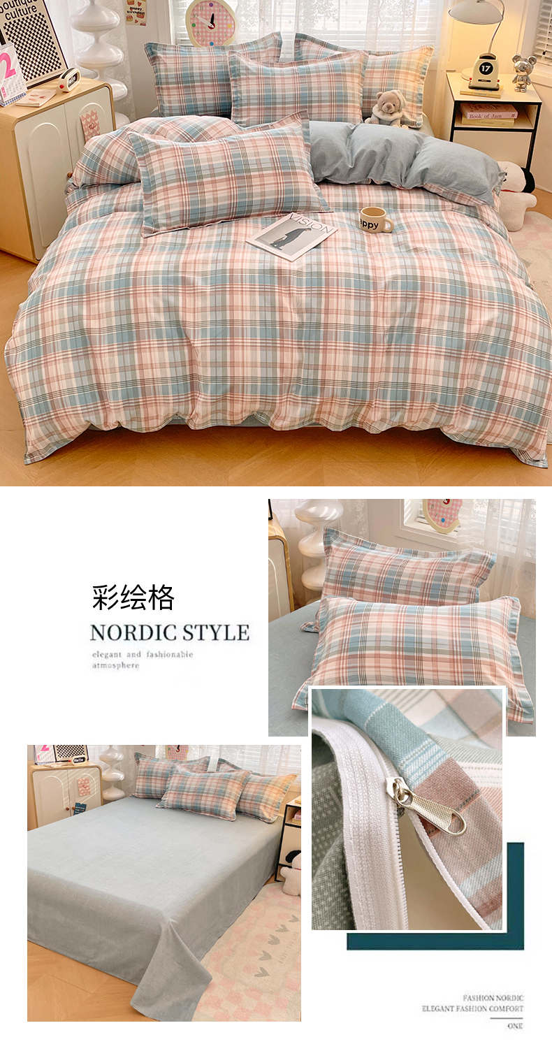 (总)世爵 2026新款10A抗菌亲肤水洗棉双拼四件套,卡其蓝,绿浅灰,墨松灰,暖驼,浅灰,深灰,深灰绿,深蓝灰,天空蓝浅灰,远山绿,远天蓝