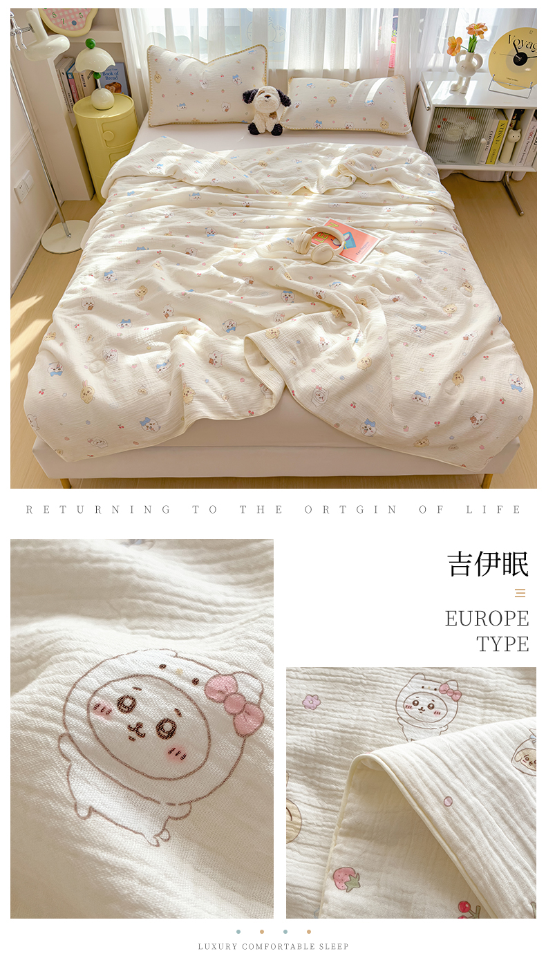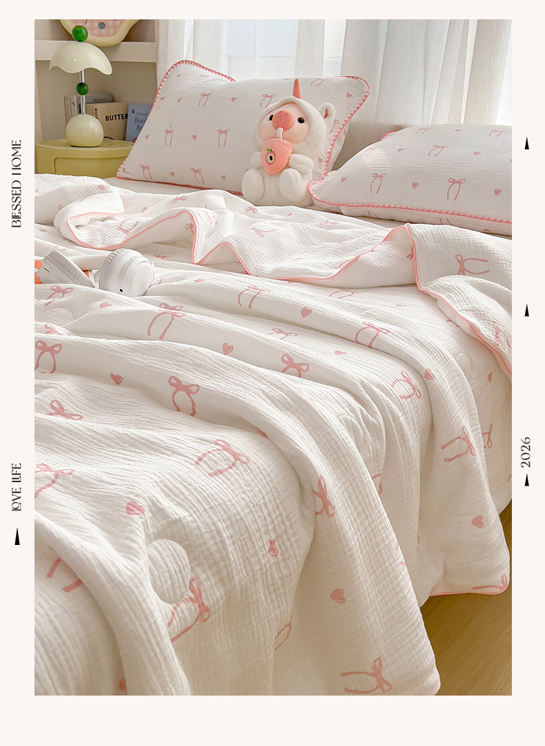 (总)兄弟坊 2026春夏新款全棉纯棉印花双层皱皱纱(滚边款)夏被纱布夏凉被午睡被盖毯夏凉被,花影梦痕,吉伊眠,莫奈雾,青芽夏,穹宇梦,柔青,象星语,星熊派,云间羽,云绮,组合图仅供展示不可下单