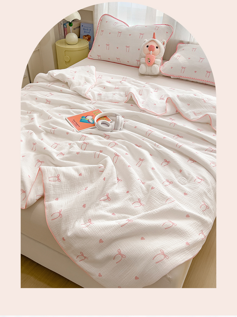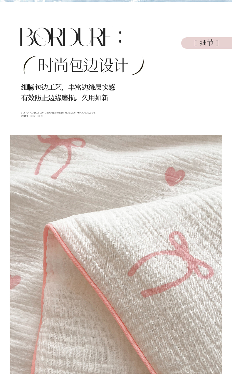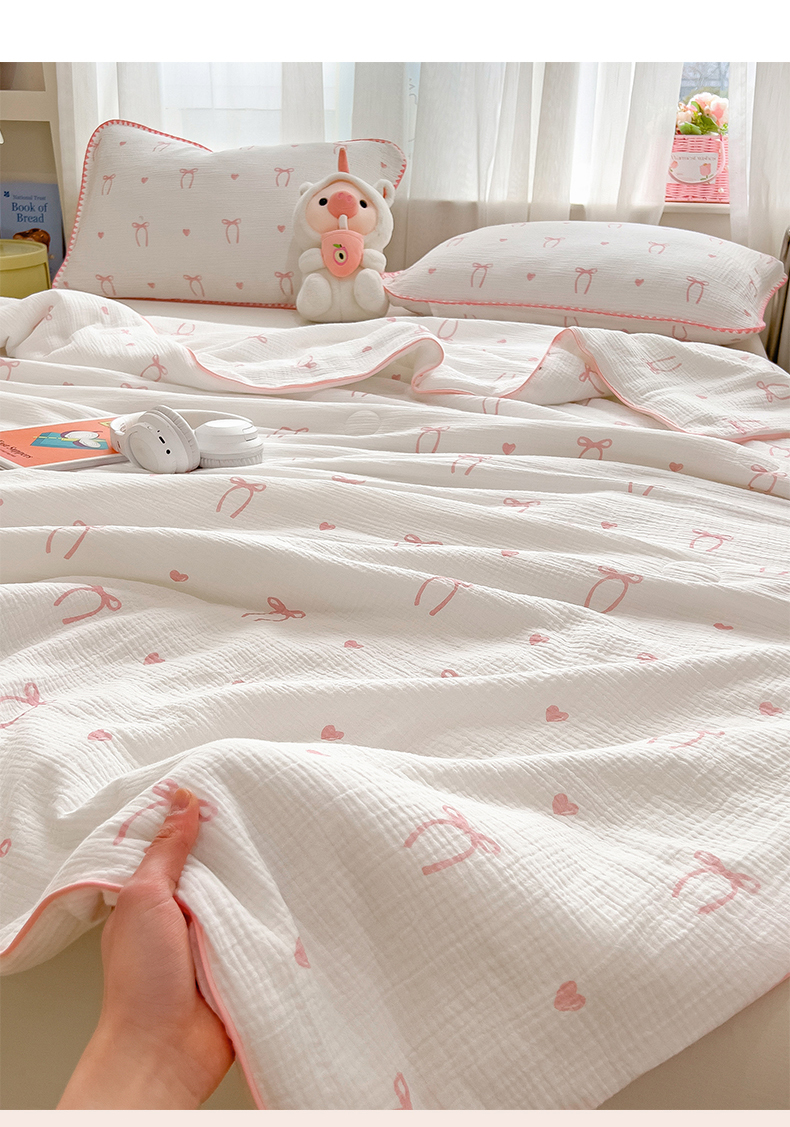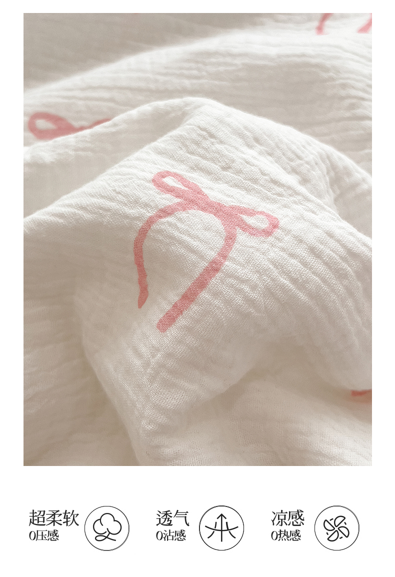商品名称:兄弟坊 2026春夏新款全棉纯棉印花双层皱皱纱(滚边款)夏被纱布夏凉被午睡被盖毯夏凉被 云绮