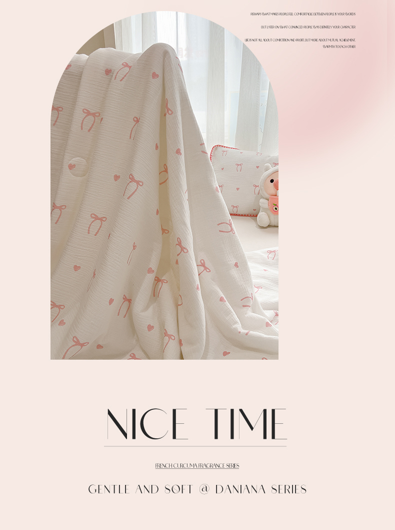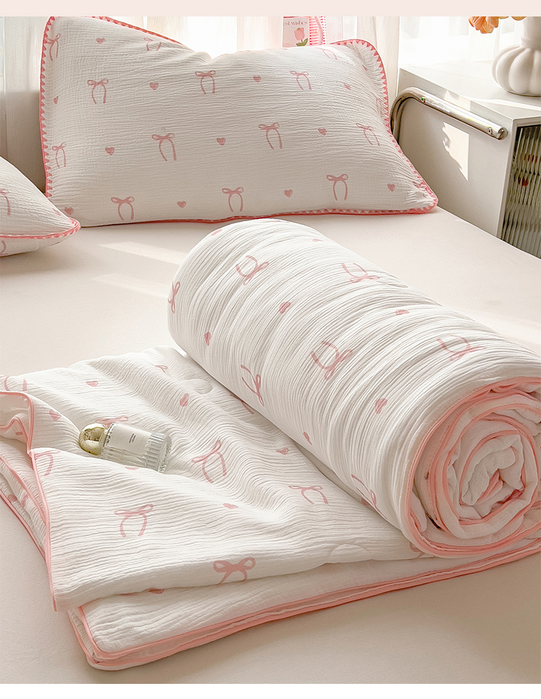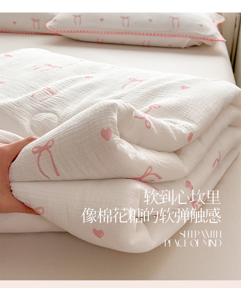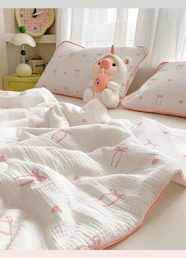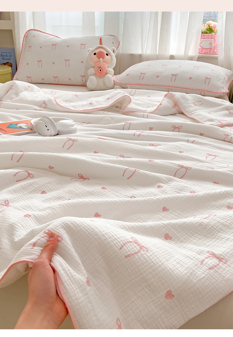 商品名称:兄弟坊 2026春夏新款全棉纯棉印花双层皱皱纱(滚边款)夏被纱布夏凉被午睡被盖毯夏凉被 云绮