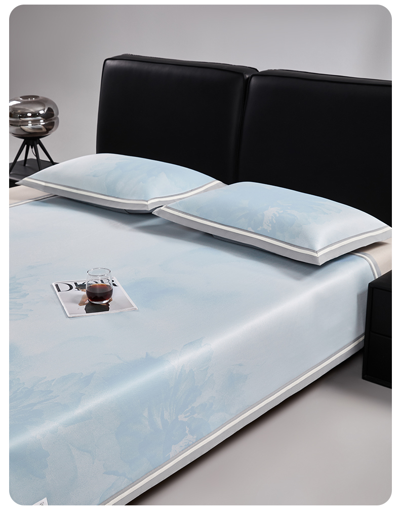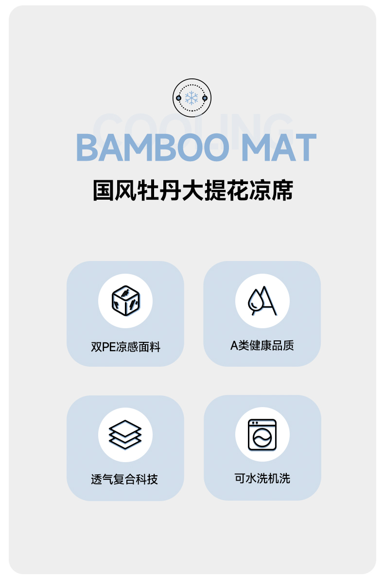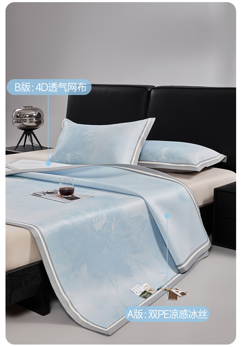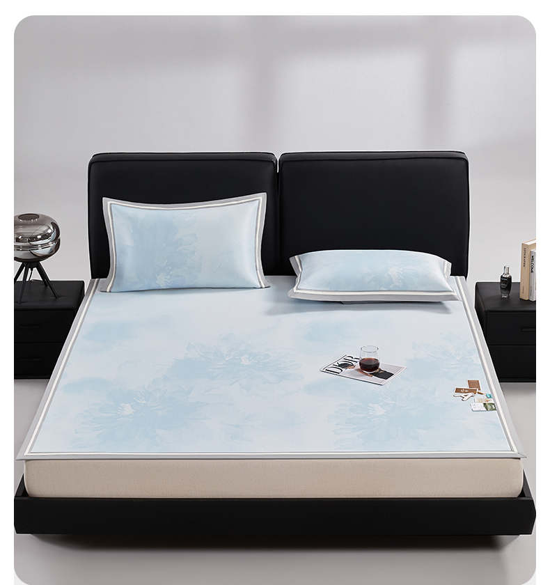小牛席业 2026新款牡丹琉璃冷感冰丝席凉席藤席冰藤席冰丝席竹席乳胶席凉豆豆席 浅蓝