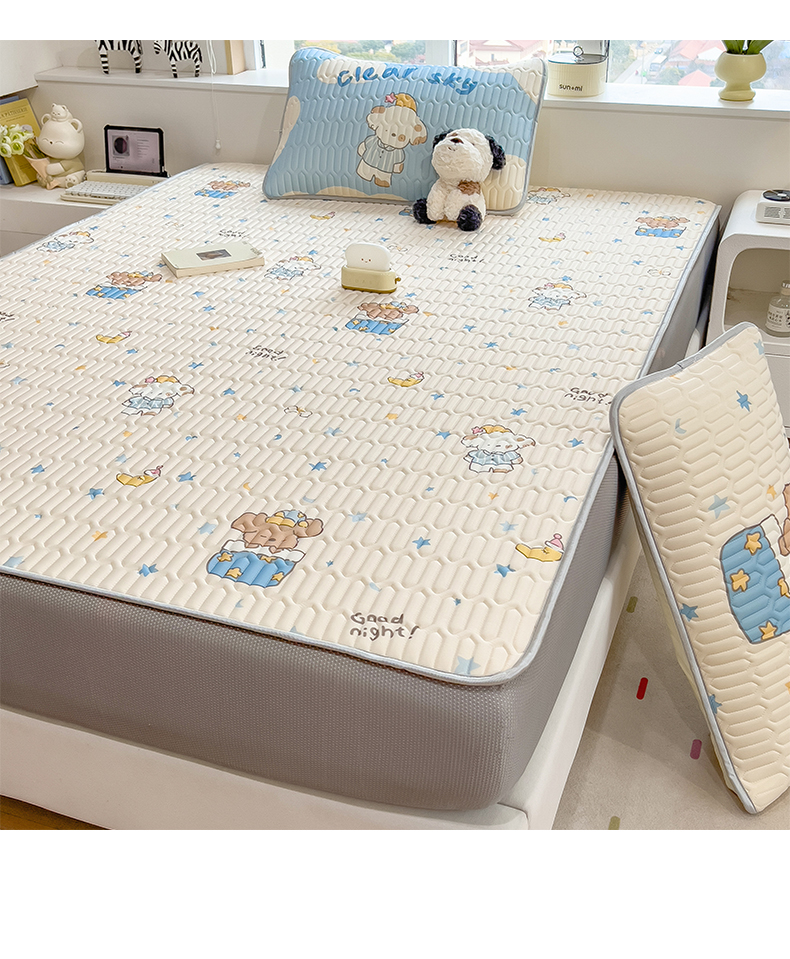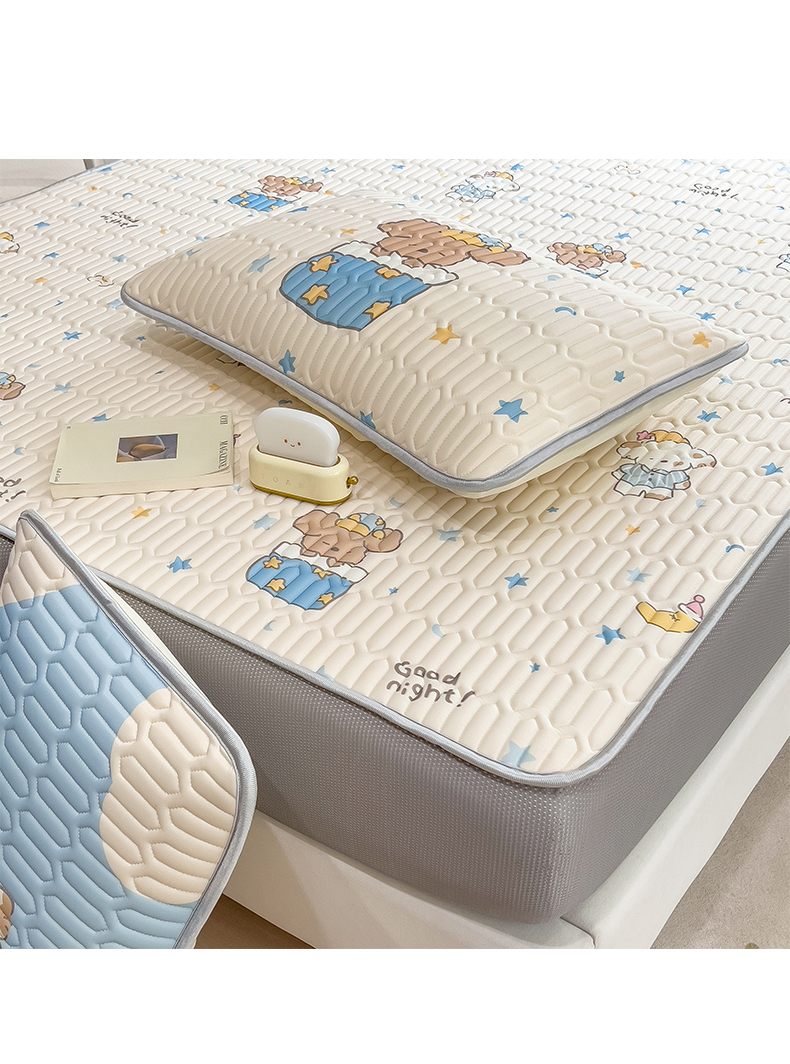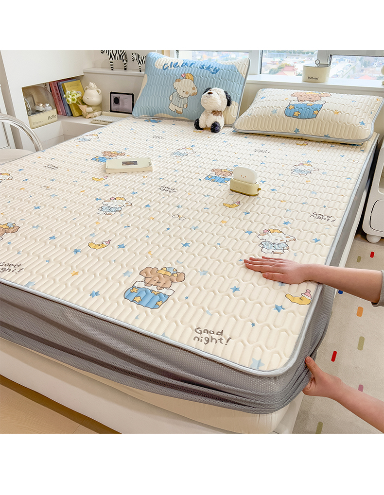 商品名称:摩妮卡 2026春夏新款凉感丝印花小清新乳胶凉席席子床笠款三件套 萌宠星夜奇遇