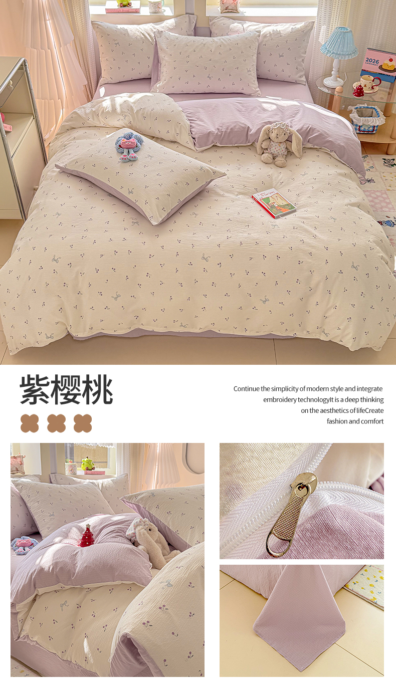 当前位置: 91家纺网 > 商品网购 > 床品套件 > 四件套 > 化纤普通四件套 > 名兮家居 2026新款A类皱皱纱四件套 泡泡兔