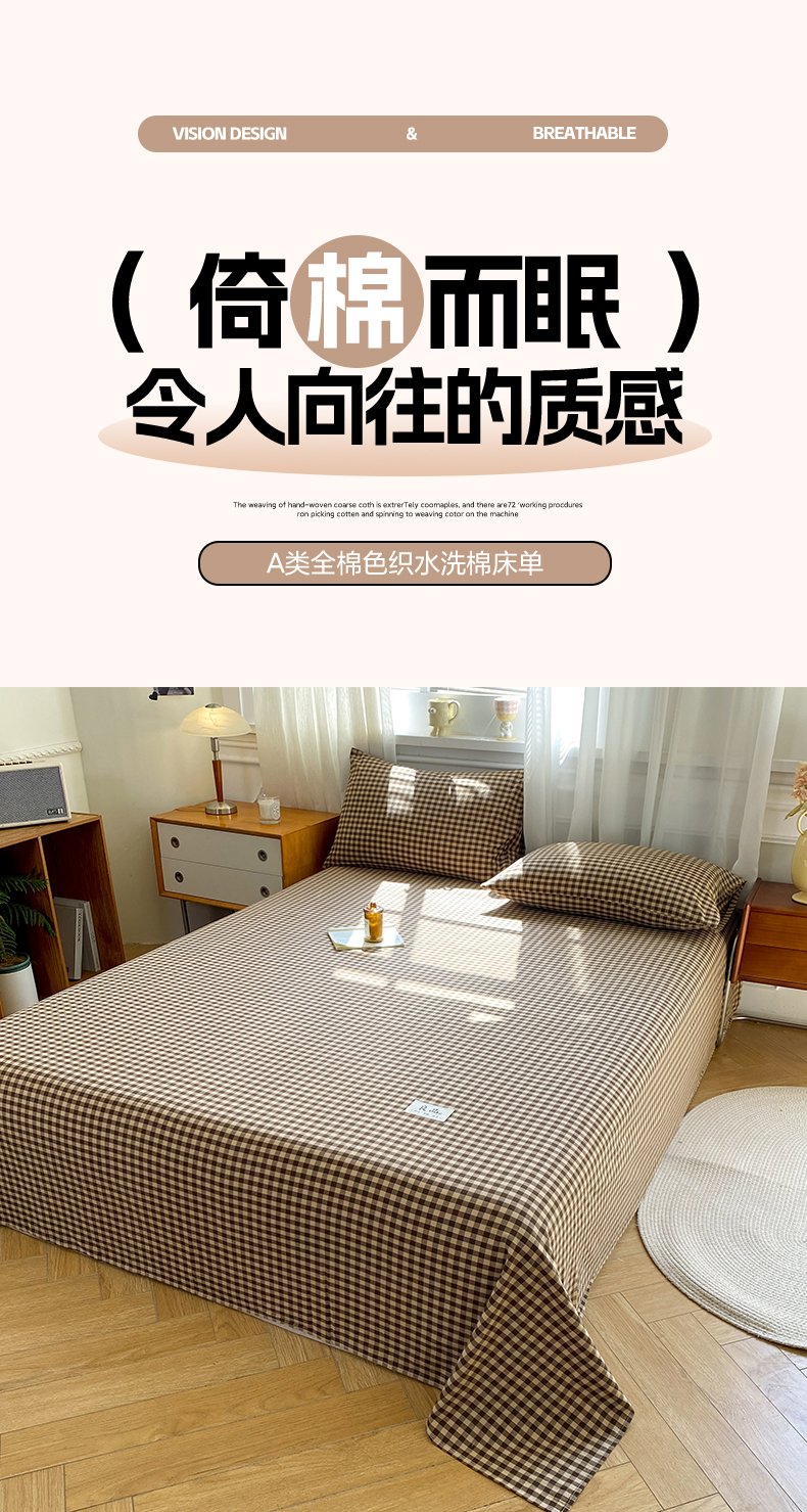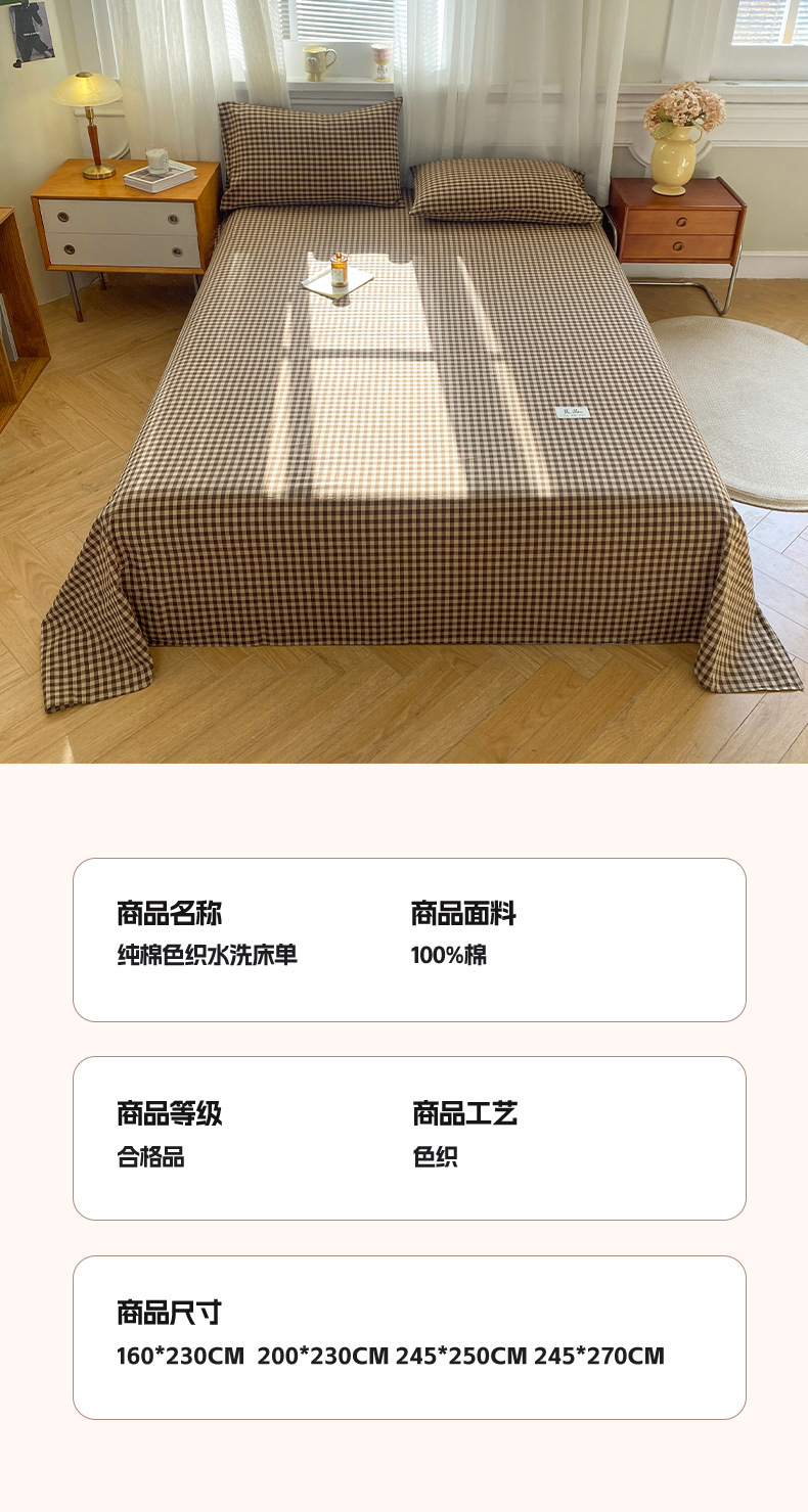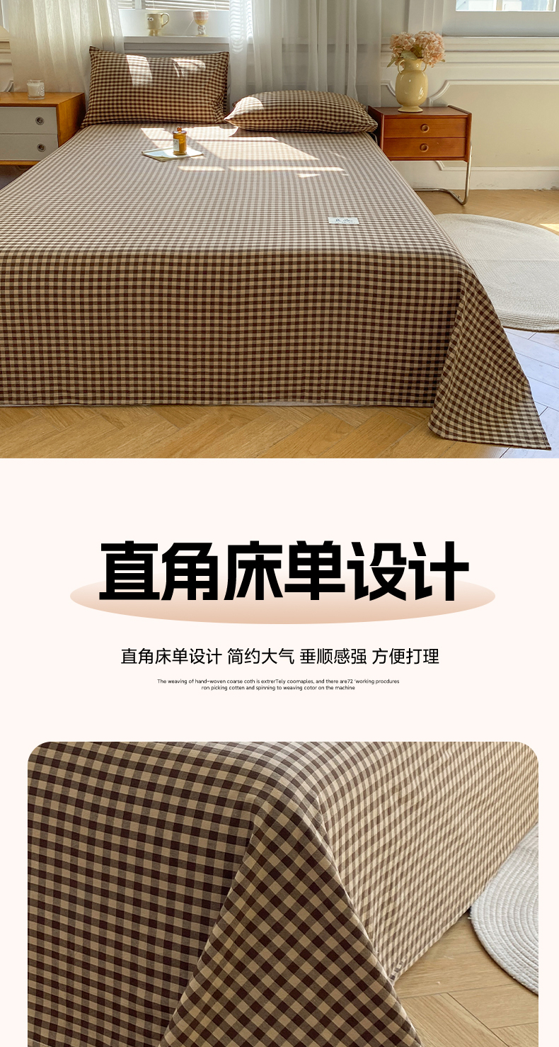 • 91家纺网 家纺一手货源 找家纺 恋人优选 2026新款全棉纯棉色织床单单床单床单单件 素格-咖