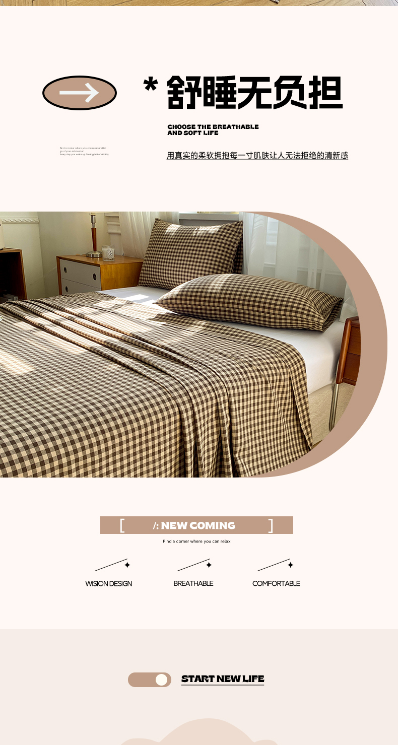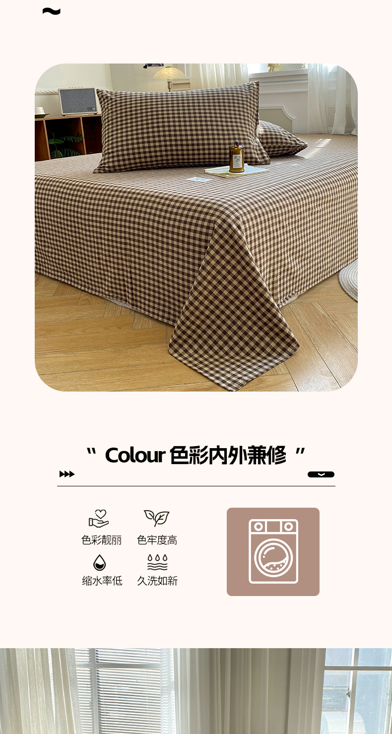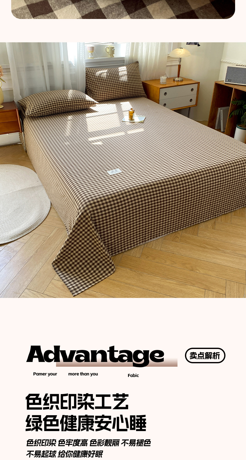 • 91家纺网 家纺一手货源 找家纺 恋人优选 2026新款全棉纯棉色织床单单床单床单单件 素格-咖