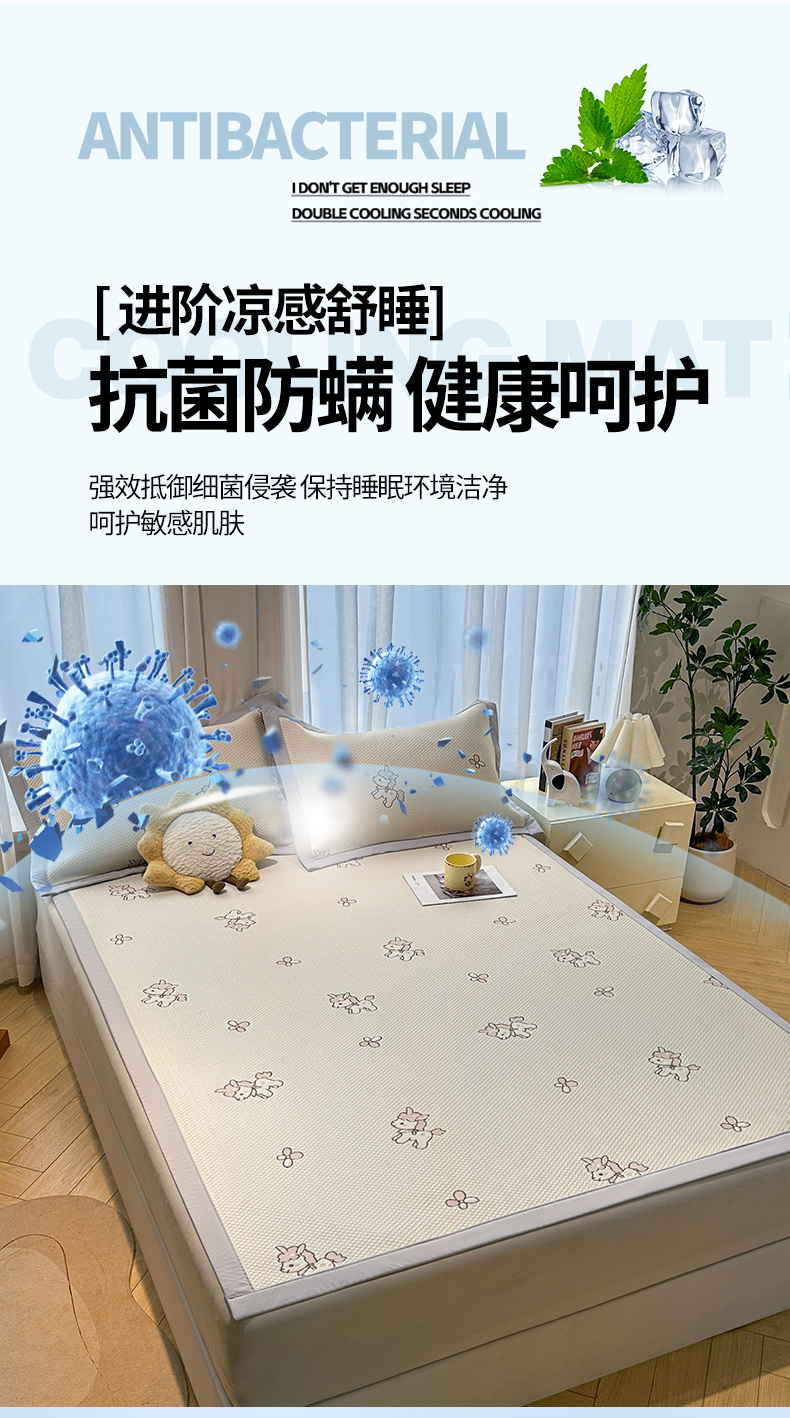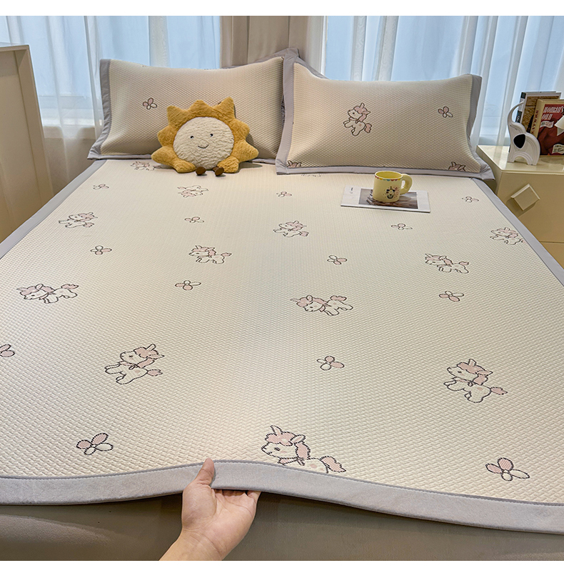 (总)织雅漫 2026春夏新款卡通乙纶冰豆豆凉席席子-床笠款,粉独角兽-床笠款,可爱布布-床笠款,腊肠小狗-床笠款,蓝蓝小熊-床笠款,梦境KT-床笠款,条纹小象-床笠款