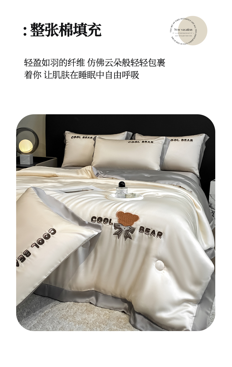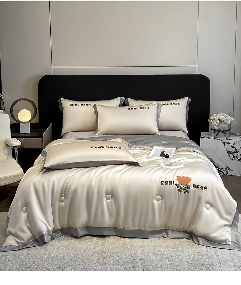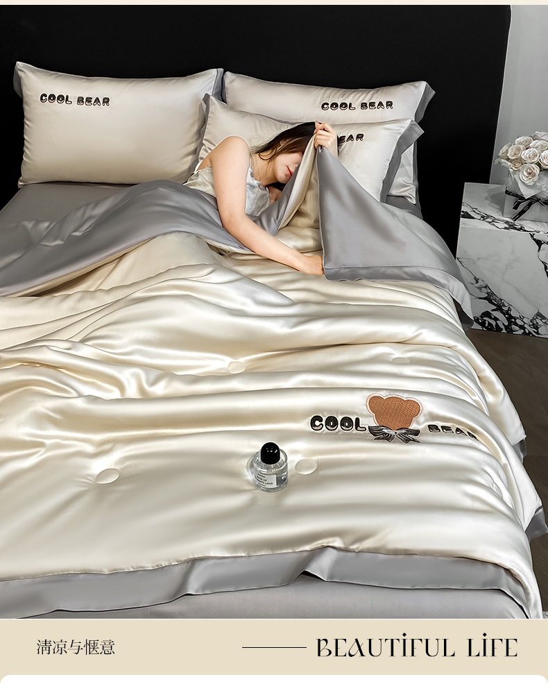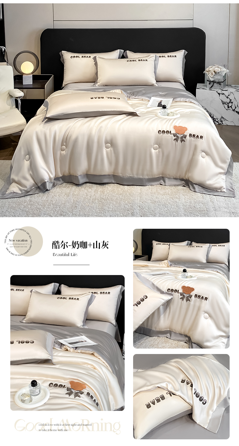 当前位置: 91家纺网 > 商品网购 > 床品套件 > 四件套 > 夏被四件套 > 云棉坊 2026新款水洗真丝冰丝夏被刺绣款-宽边系列 酷尔-奶咖+山灰