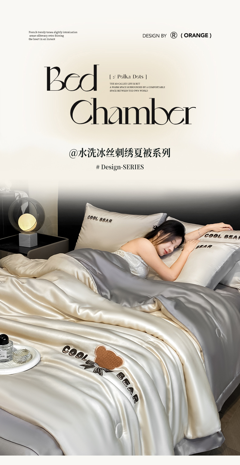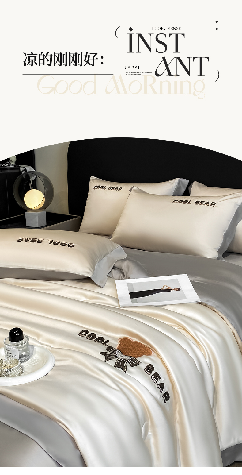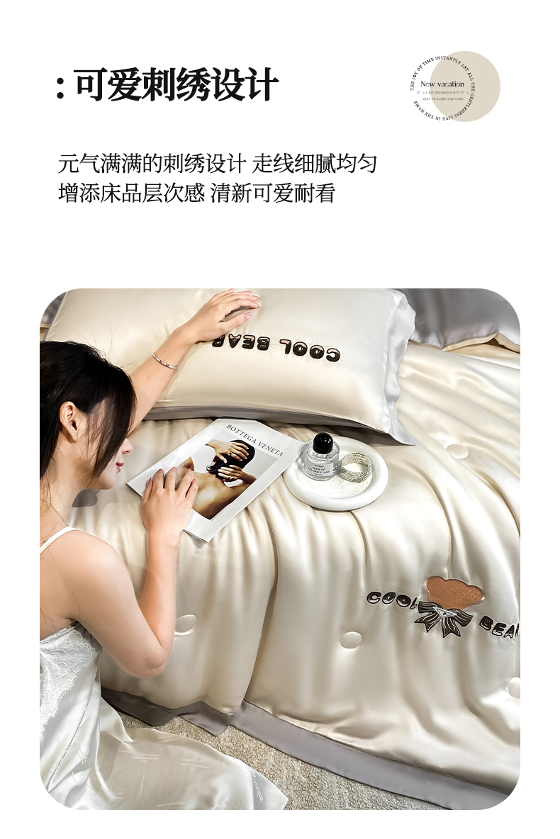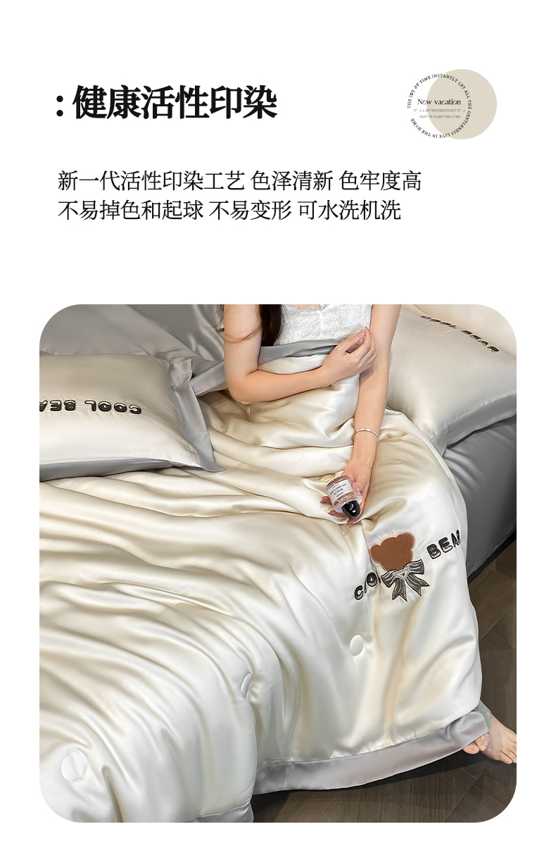 当前位置: 91家纺网 > 商品网购 > 床品套件 > 四件套 > 夏被四件套 > 云棉坊 2026新款水洗真丝冰丝夏被刺绣款-宽边系列 酷尔-奶咖+山灰
