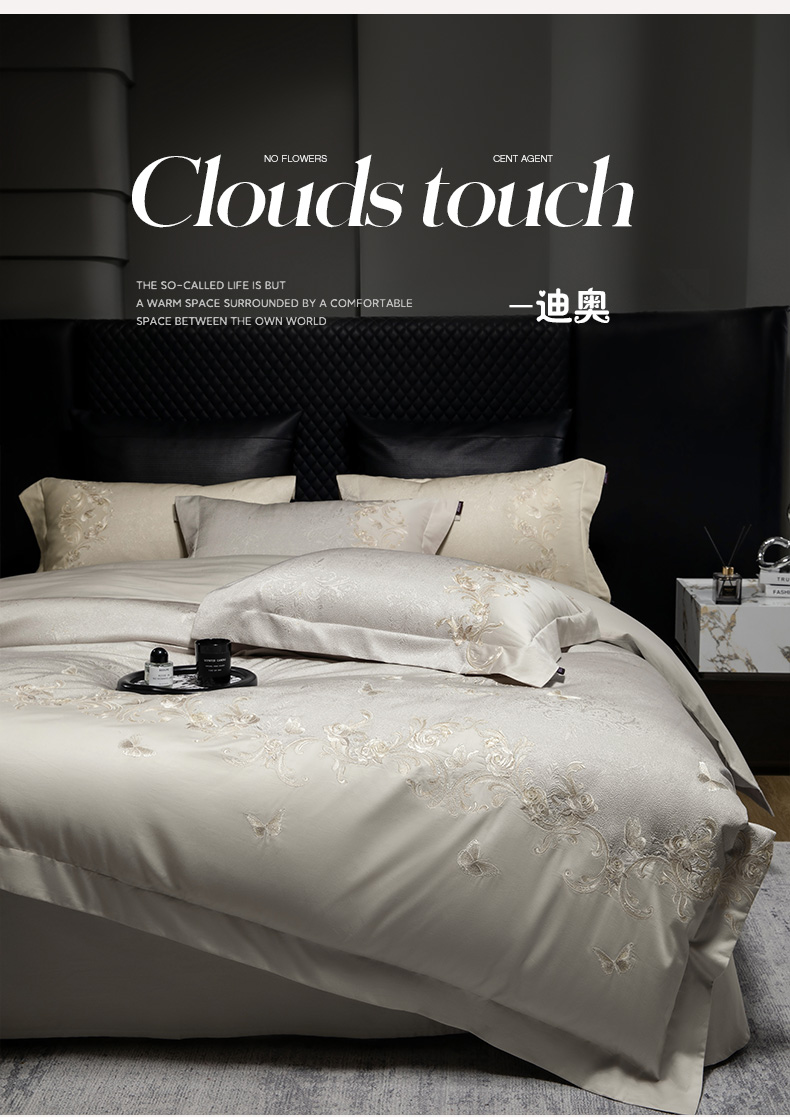 当前位置: 91家纺网 > 商品网购 > 床品套件 > 四件套 > 长绒棉四件套 > 爱妮菲家纺 2026高端新品A类100支长绒棉纯棉四件套100全棉厚织提花高档重工刺绣被套床单床笠床上用品 觅棠-迷雾灰