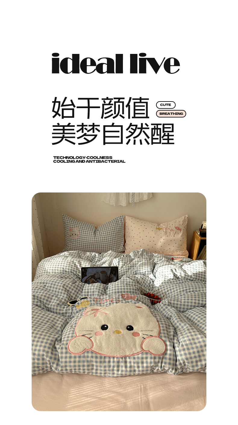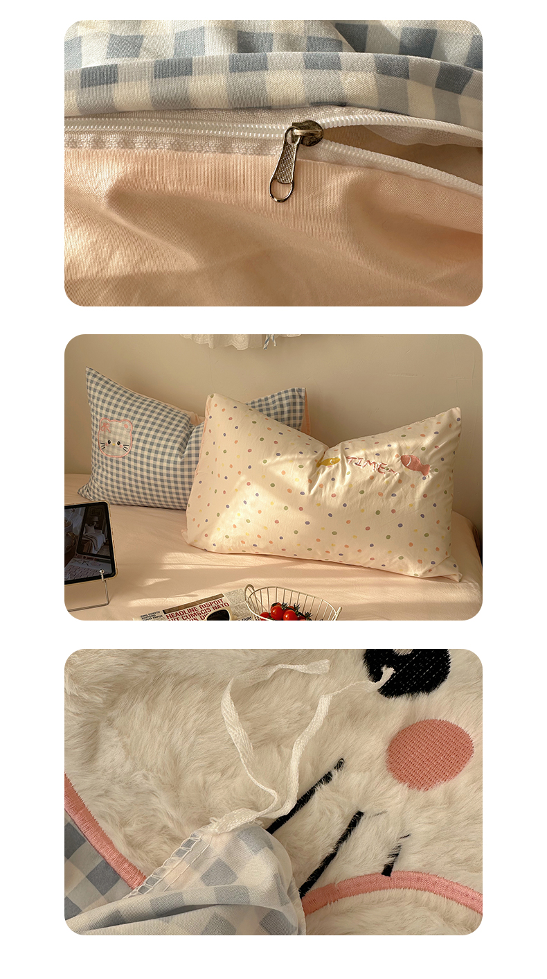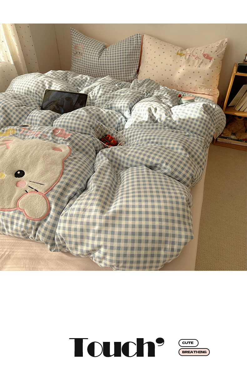 当前位置: 91家纺网 > 商品网购 > 床品套件 > 四件套 > 化纤普通四件套 > 顾里家纺 2026新款云感皱皱纱卡通贴布绣四件套(会员-3元) 粉格趴猫