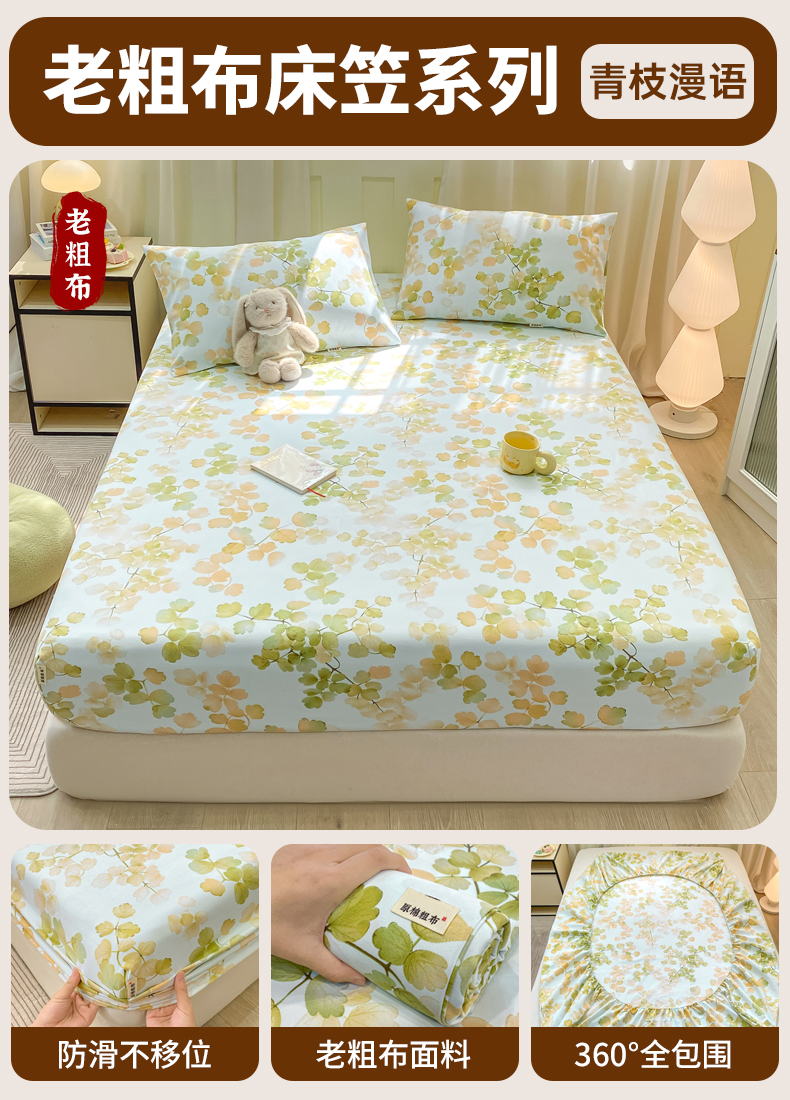 • 91家纺网 家纺一手货源 找家纺 优品惠 2026新款老粗布床笠凉席席子空调软席单品床垫保护套三件套 波西米亚