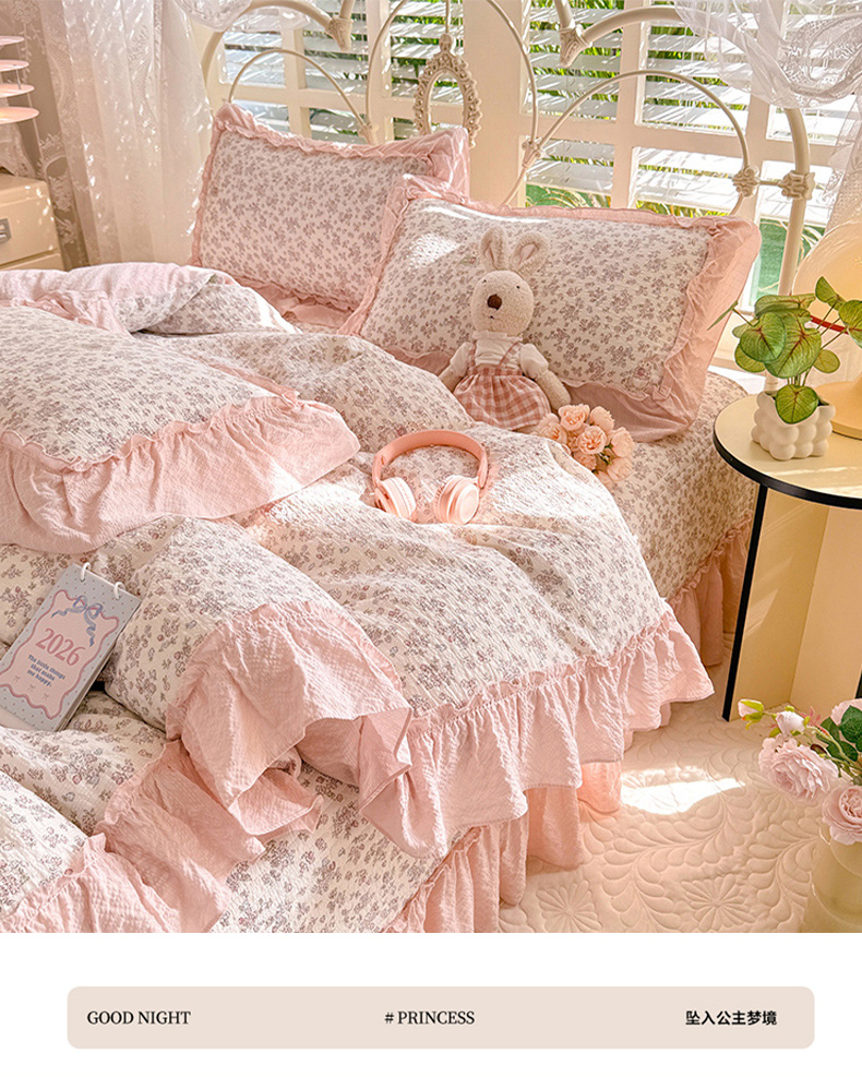 (总)韩约家纺 2026新款韩式花边古法棉感床盖四件套,知否,午后时光,漫花蝶舞,莓莓果,花影,甜心狗,初遇,萝莉,雨沫