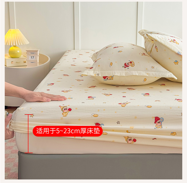 • 91家纺网 家纺一手货源 找家纺 优雅星家纺 2026春夏新款a类泡芙双层纱床笠印花卡通全包围床垫保护套单床笠 床笠单件 星星人