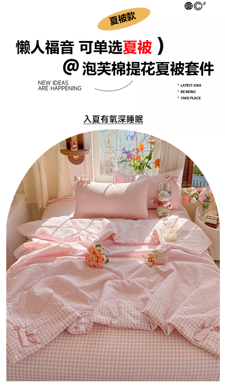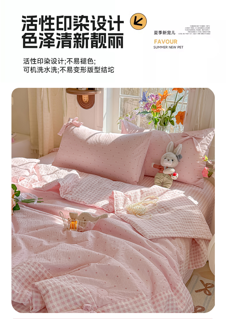 瑞禾家纺(原阿亮) 2026新款提花泡芙棉拼角蝴蝶结软乎乎的撸猫感单夏被夏被四件套-甜莓气泡 甜莓气泡-奶粉波点