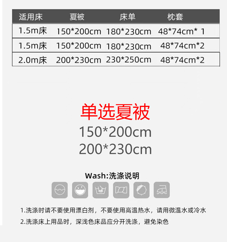 150x200cm单夏被+床单+枕套一对