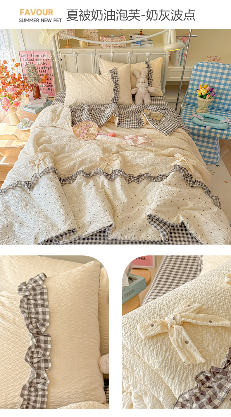 (总)瑞禾家纺(原阿亮) 2026新款提花泡芙面蝴蝶结花边韩剧女主感单夏被夏被夏凉被空调被四件套-奶油泡芙,组合图(仅供展示不可下单),夏被奶油泡芙-海盐蓝波点,夏被奶油泡芙-奶粉波点,夏被奶油泡芙-奶红波点,夏被奶油泡芙-奶灰波点