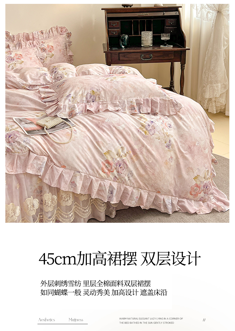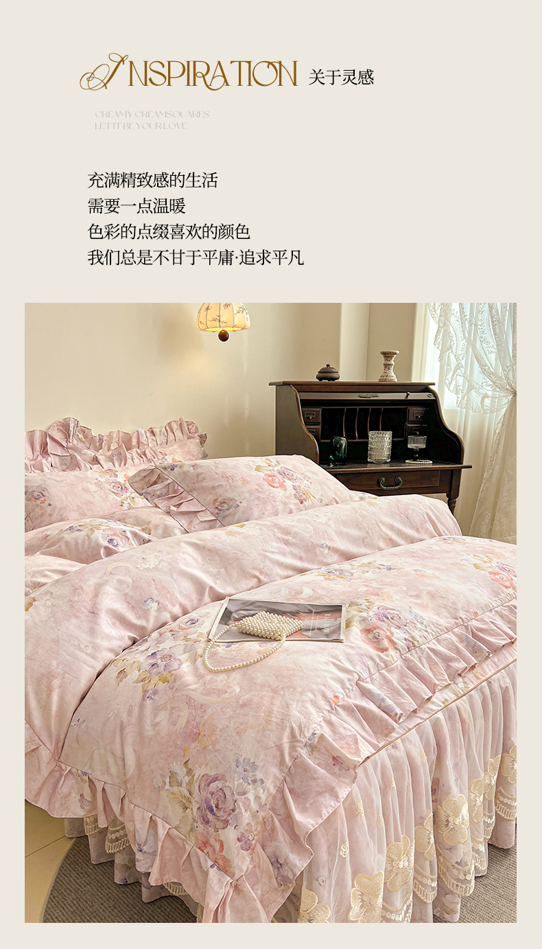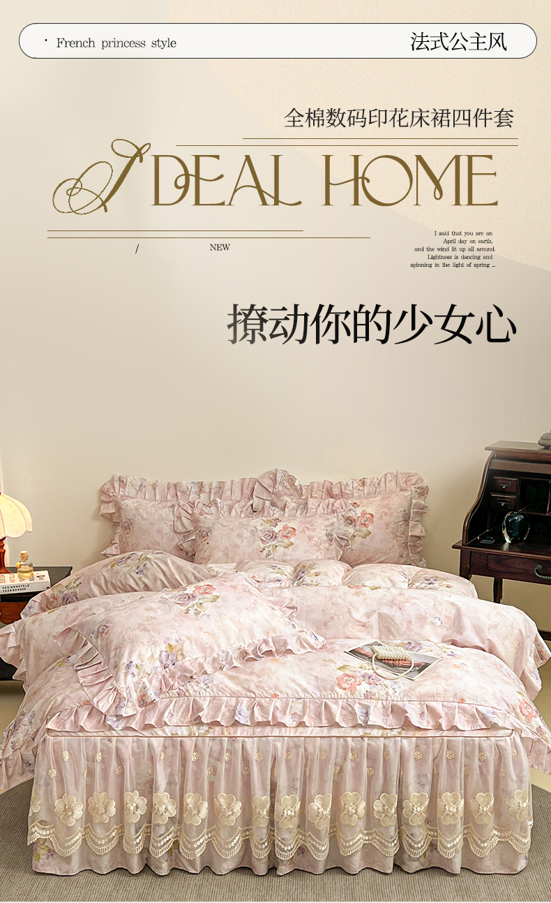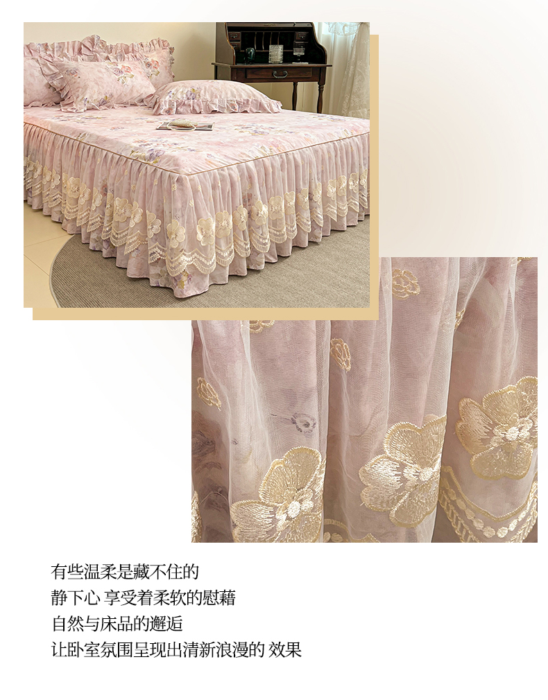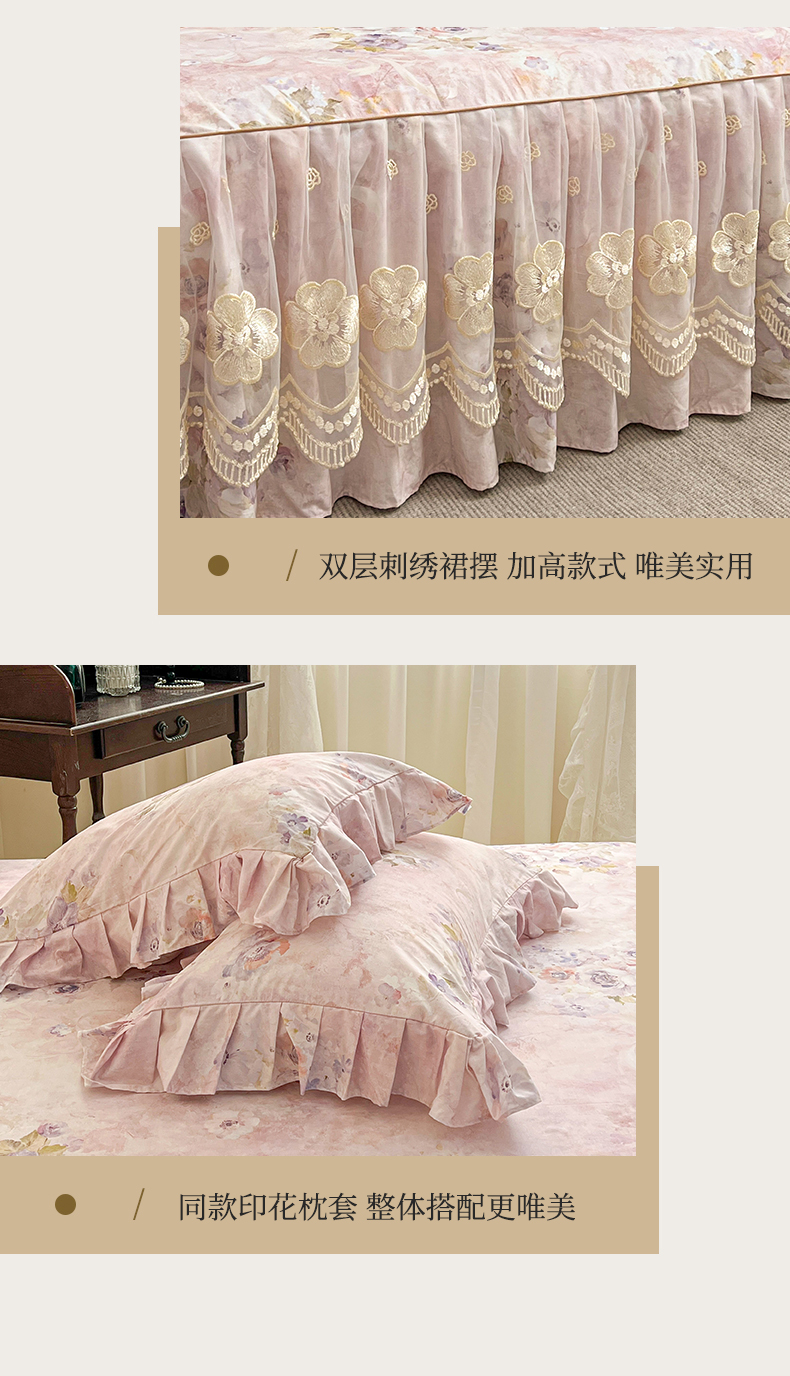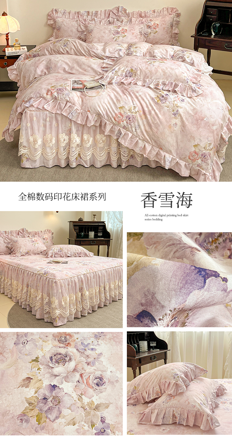 当前位置: 91家纺网 > 商品网购 > 床品套件 > 四件套 > 全棉普通四件套 > 宜凡家纺 2026新款全棉数码印花单层床裙三四件套①号系列四件套 香雪海