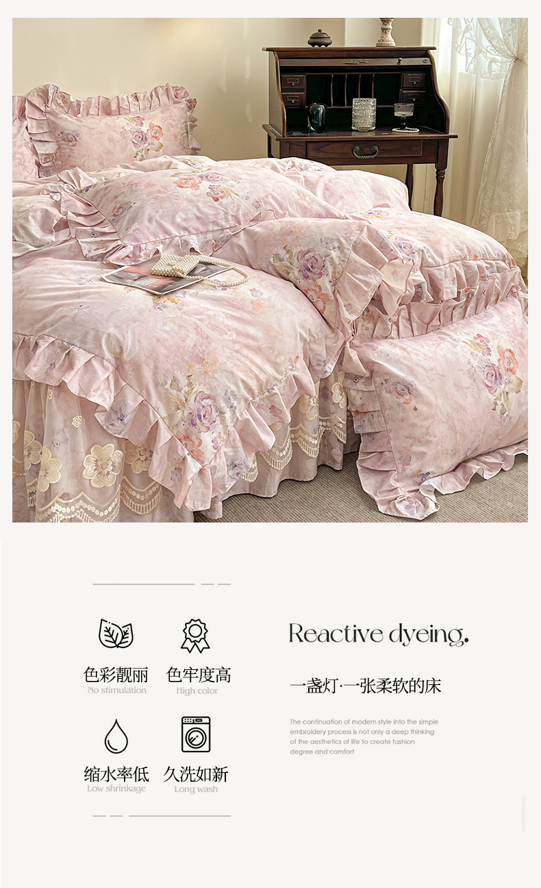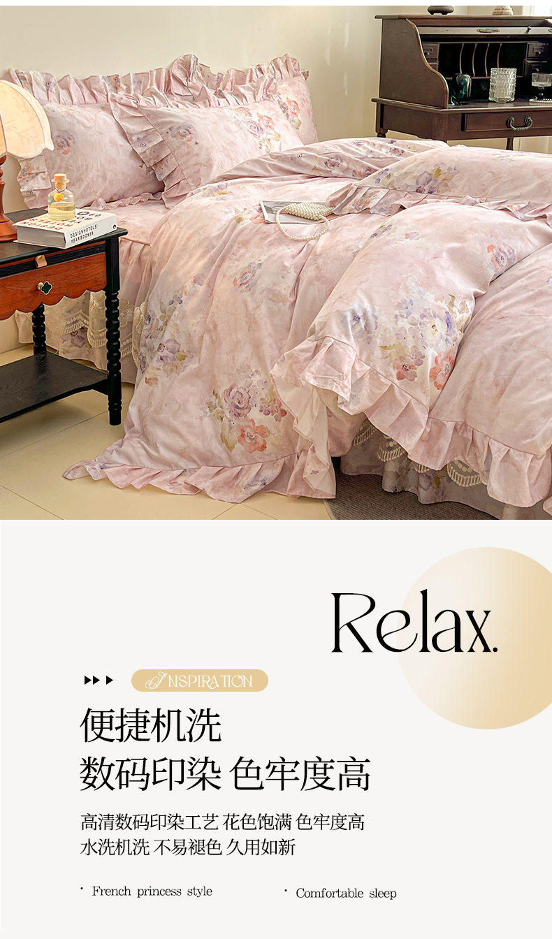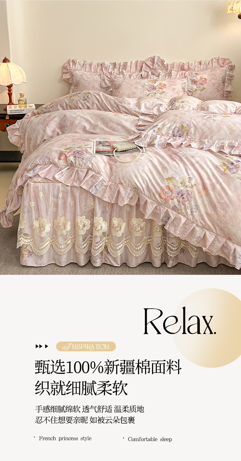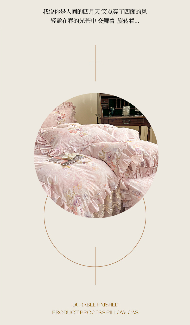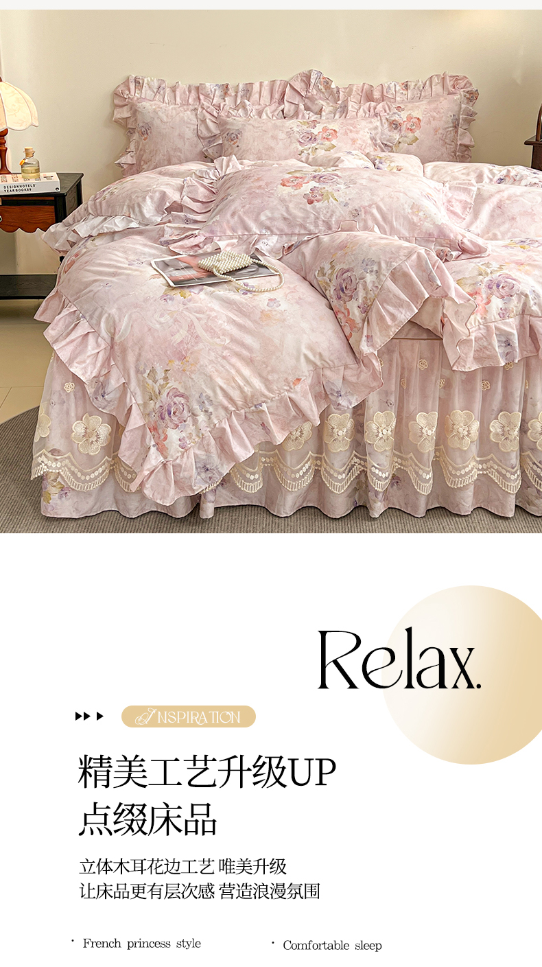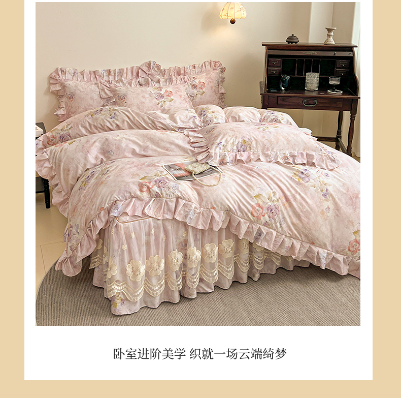 当前位置: 91家纺网 > 商品网购 > 床品套件 > 四件套 > 全棉普通四件套 > 宜凡家纺 2026新款全棉数码印花单层床裙三四件套①号系列四件套 香雪海