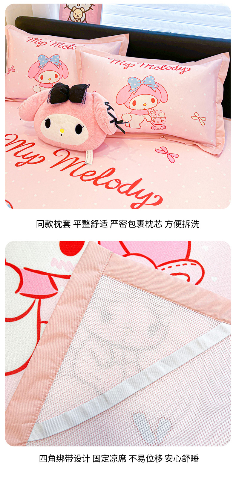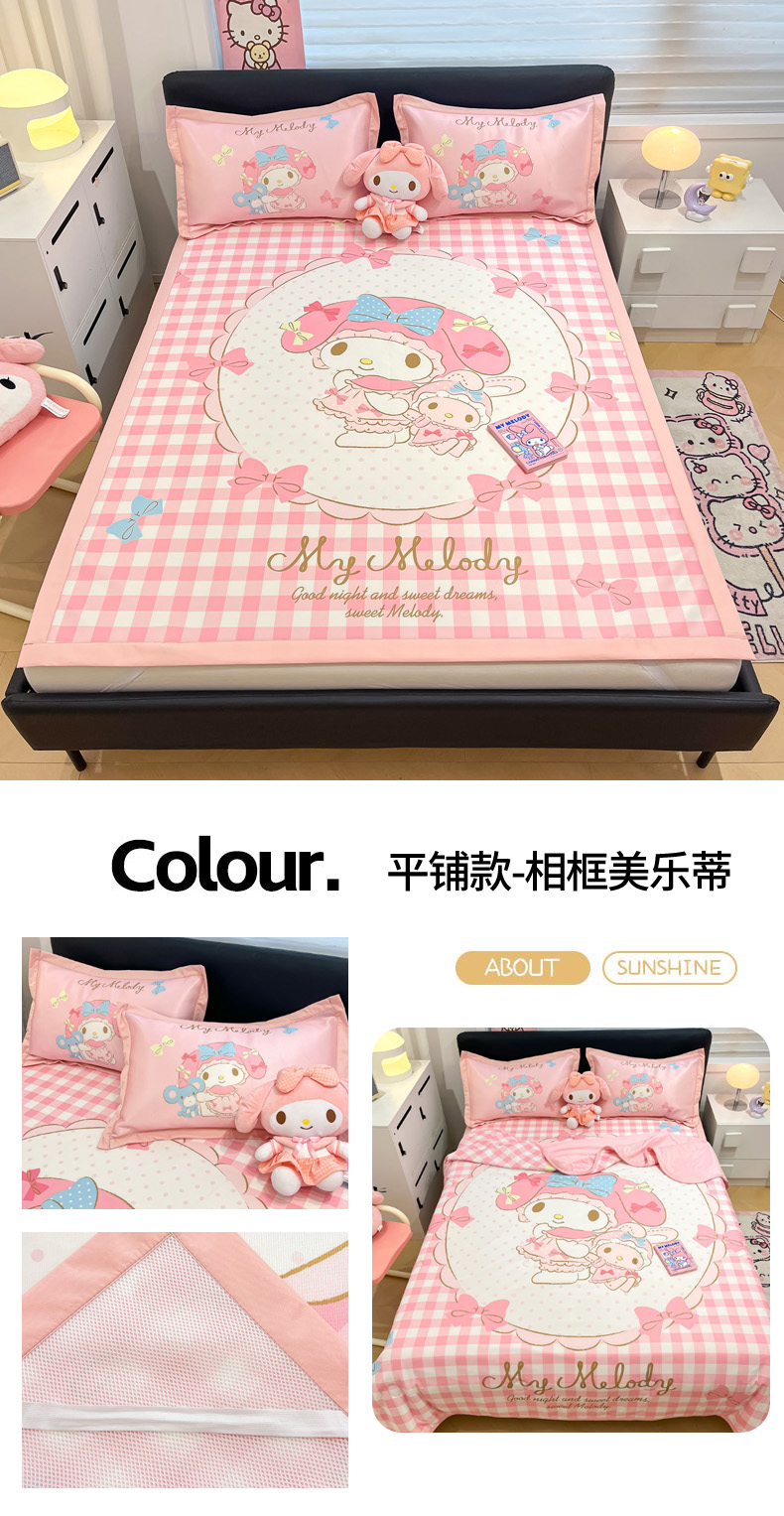 当前位置: 91家纺网 > 商品网购 > 床上用品 > 凉席 > 冰丝席 > 暮思家居 2026新款正版授权A类大版数码印花三丽鸥1200D冰丝凉席可组合仿锦氨夏被 平铺款-小兔美乐蒂