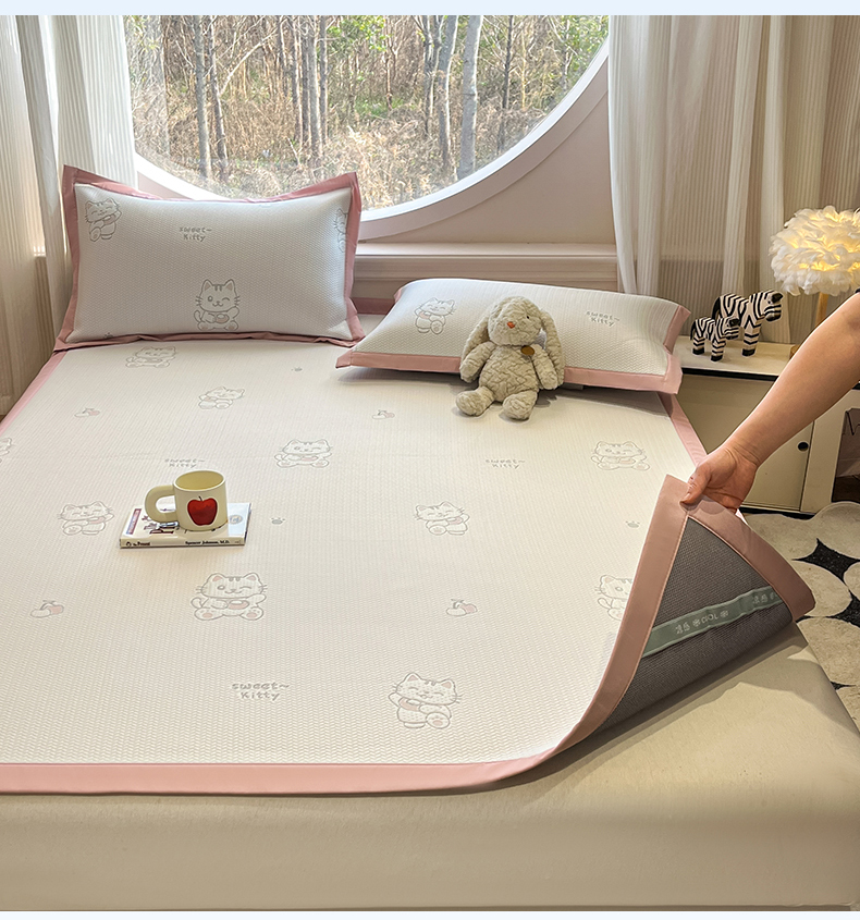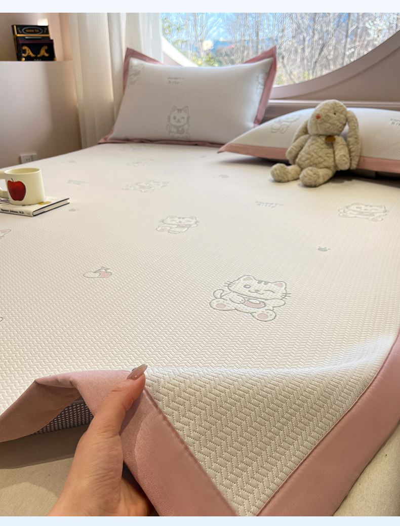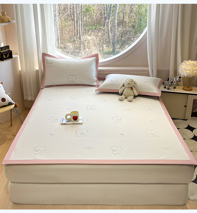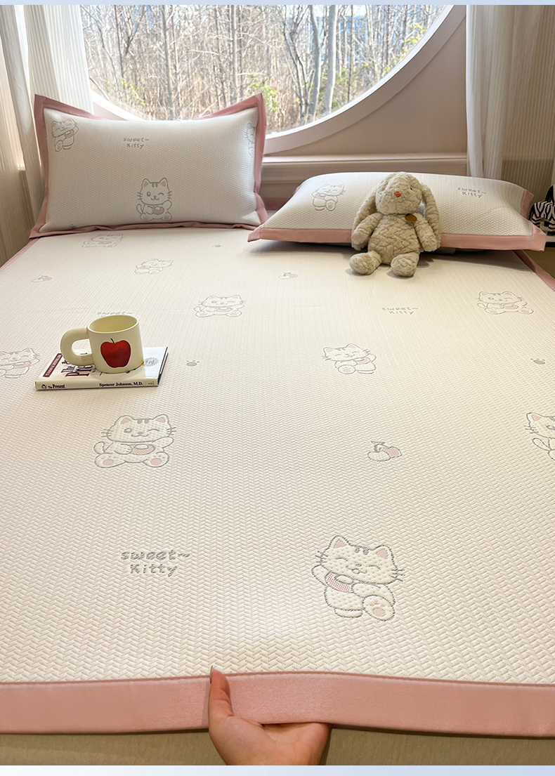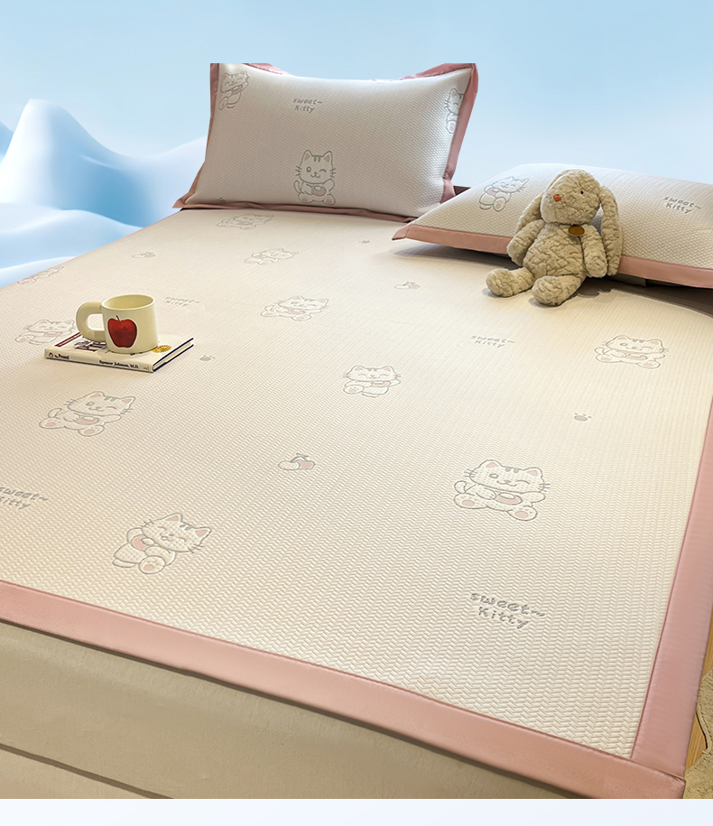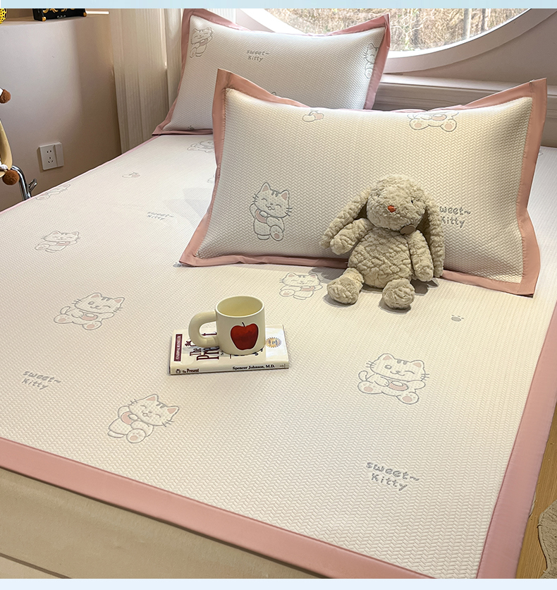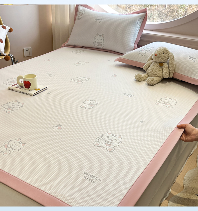 天之澜家纺 2026新款PE凉豆豆凉席小红书热卖款A类冰豆豆凉席三件套可水洗豆豆凉席-床席款 招财猫