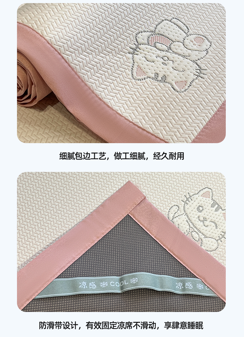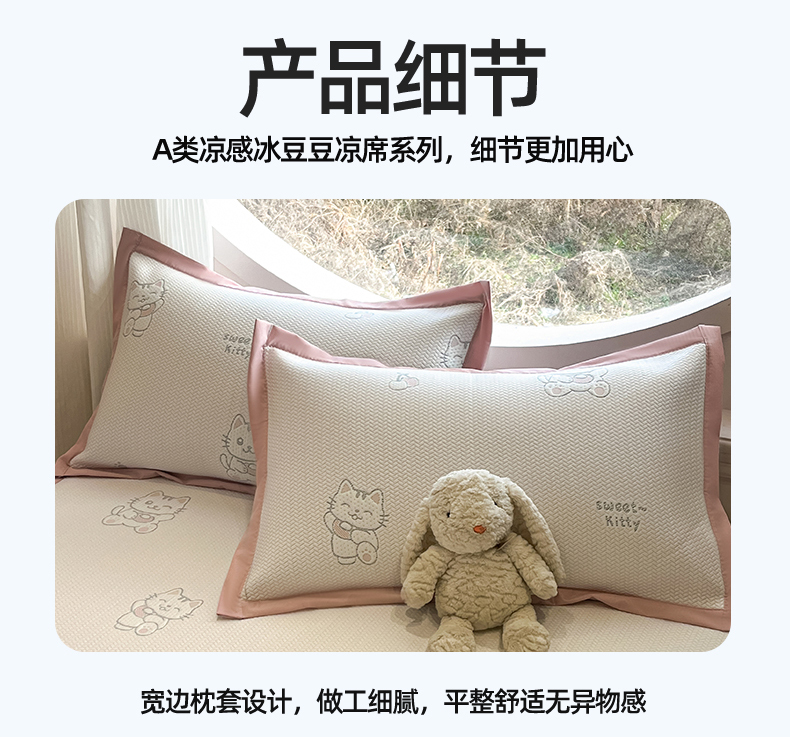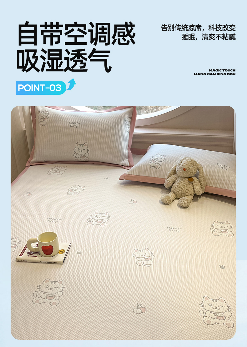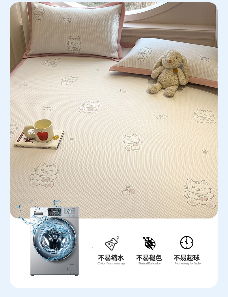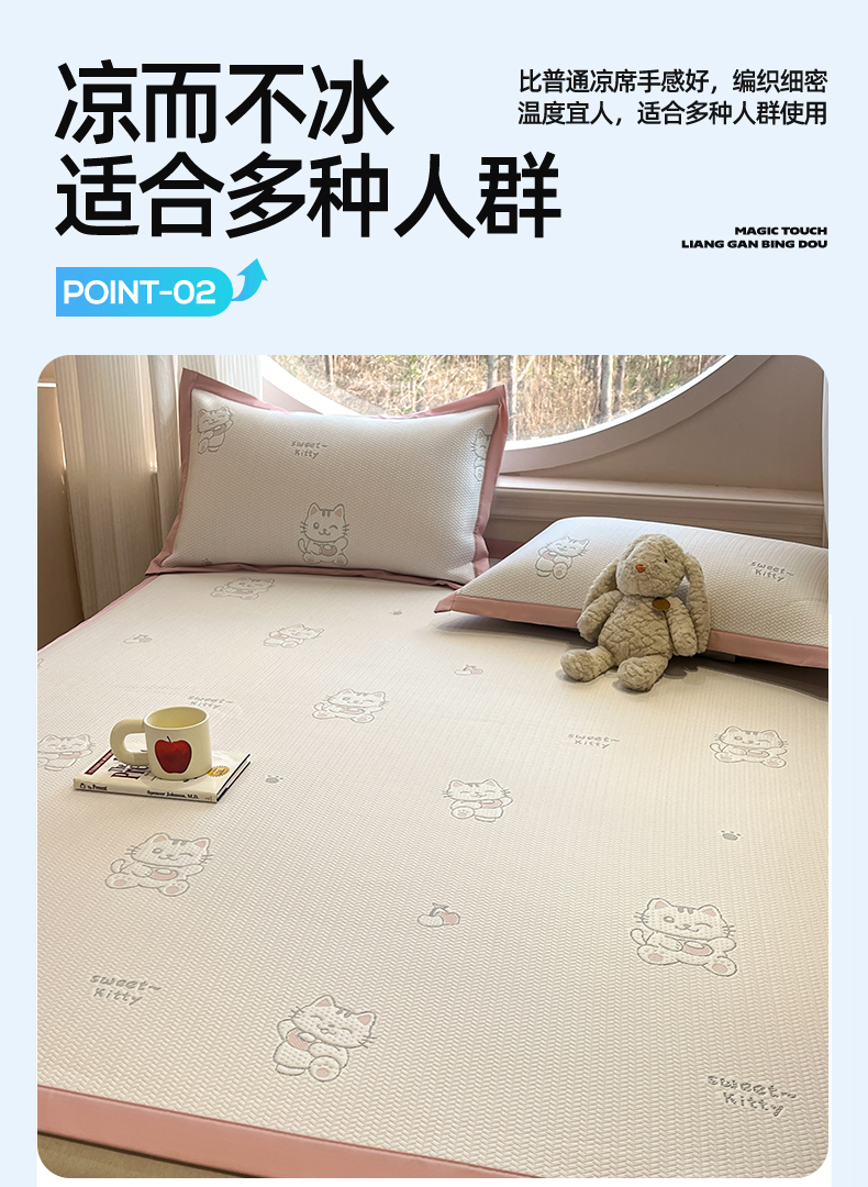 商品名称:天之澜家纺 2026新款PE凉豆豆凉席小红书热卖款A类冰豆豆凉席三件套可水洗豆豆凉席-床席款 招财猫